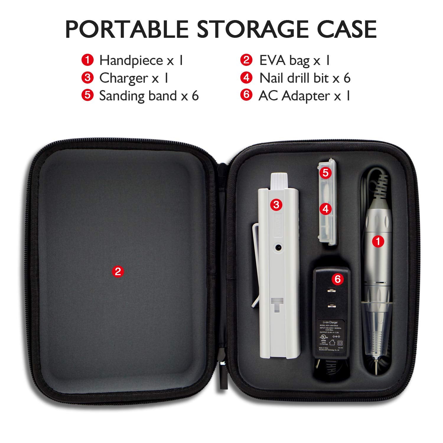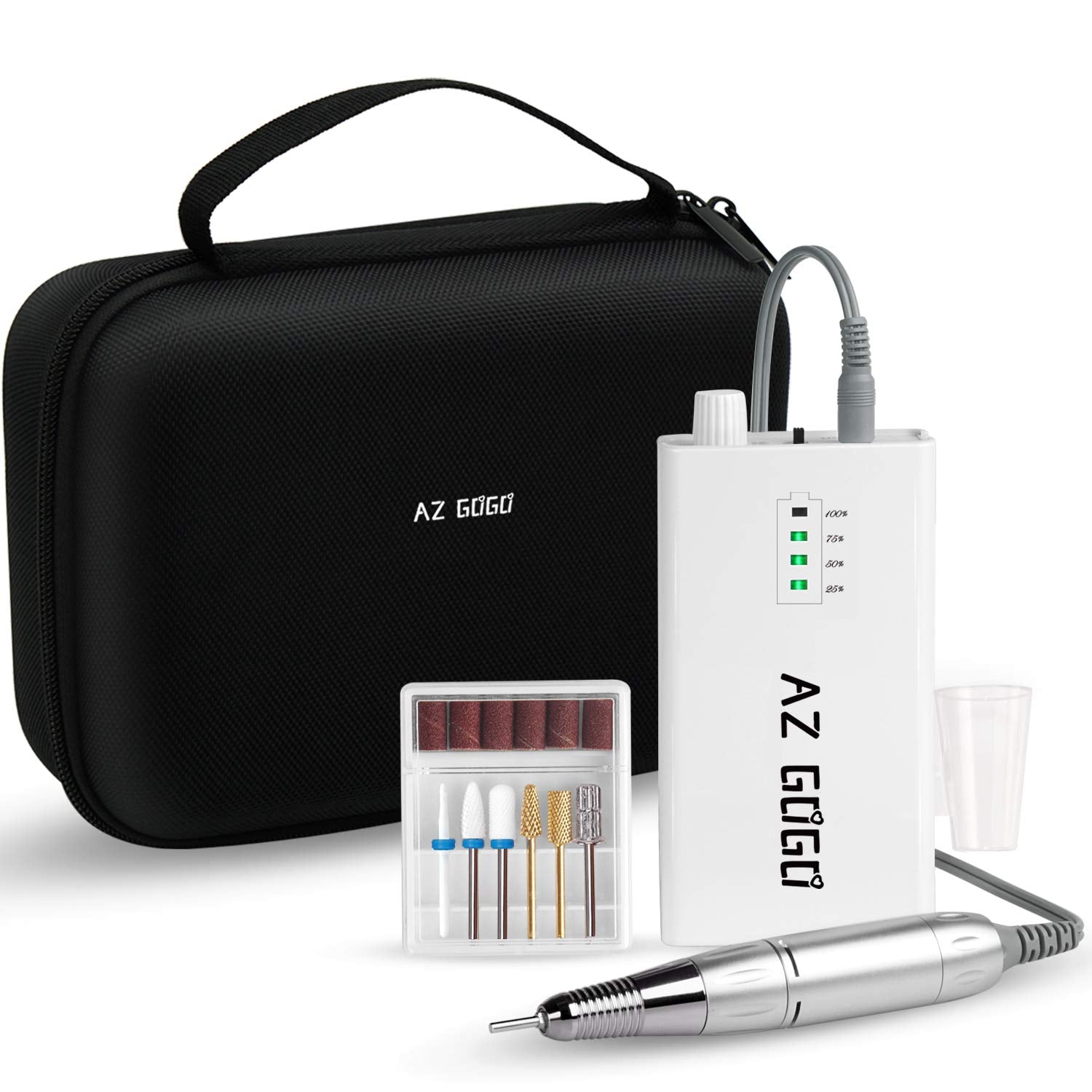 AZ GOGO Efile Nail Drill Machine, 30000 RPM Professional Portable Nail Drill for Acrylic Nails - E-File Manicure/Pedicure Kit with EVA Bag (White)