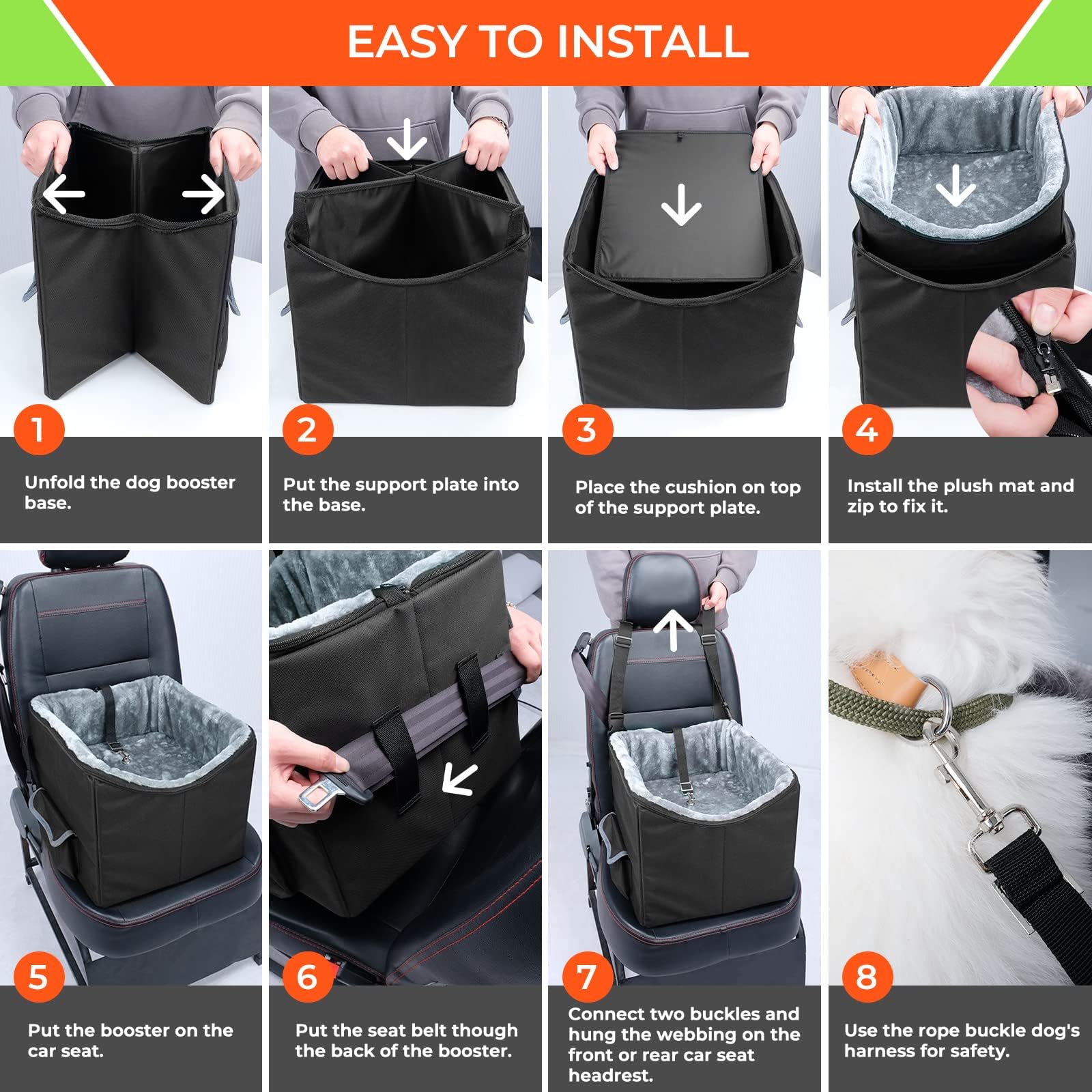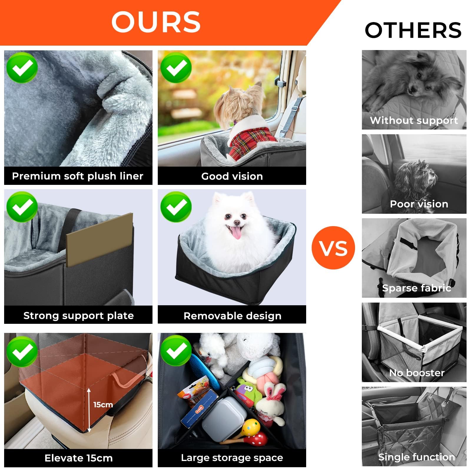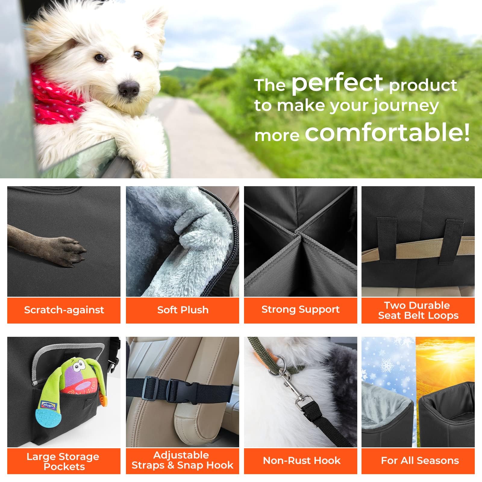 - 【Universal Year-Round】Made of durable 600D Oxford cloth material and used together with the plush cushion, this puppy car seat booster can be connected to the cushion with a zipper. The cushion of the doggie car seats is reversible, with Oxford cloth for summer and plush for winter, creating a comfortable environment for your pet all year round