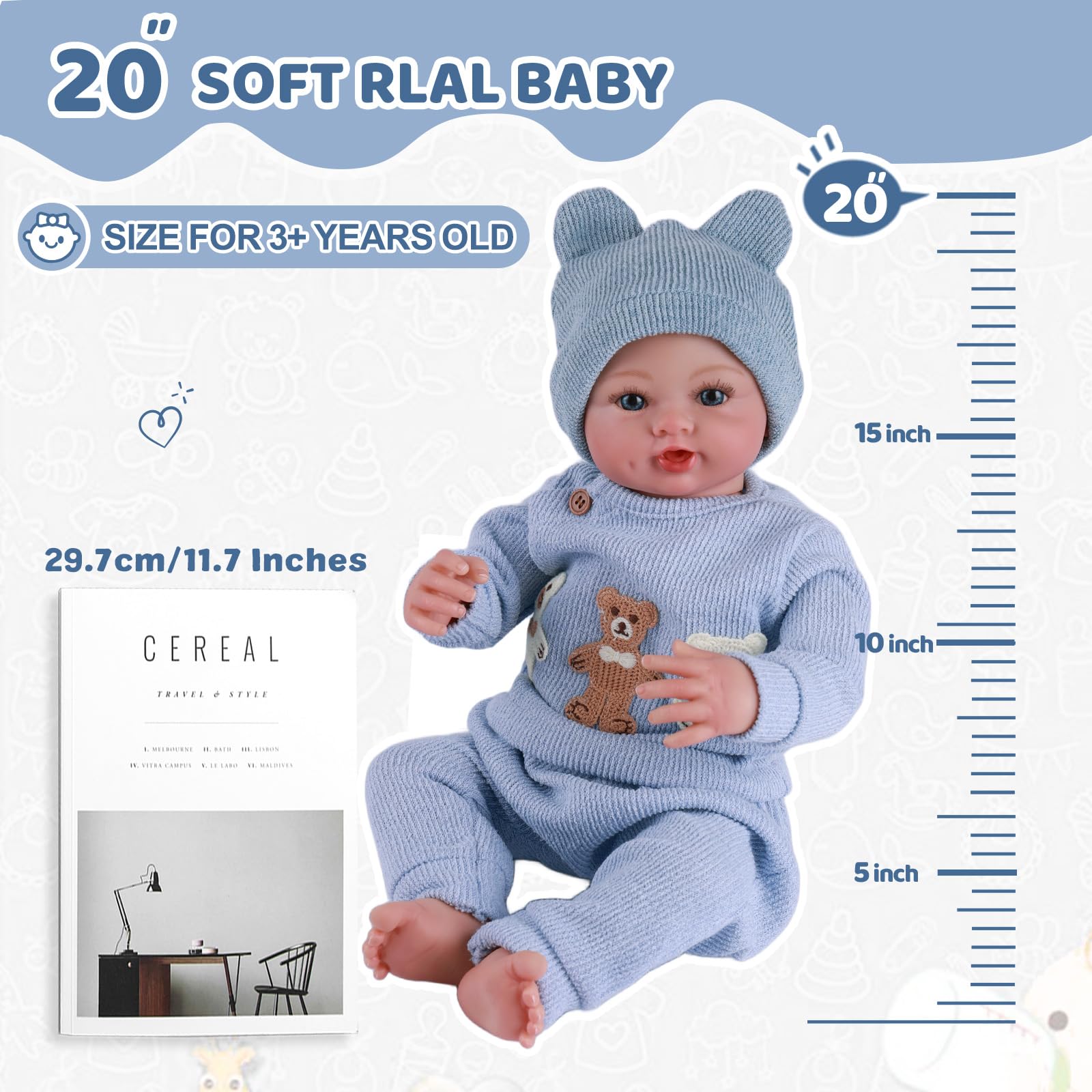 BABESIDE Reborn Baby Dolls Boy - 17 Inch Lifelike Newborn Baby Doll Handmade Real Life Baby Dolls Reborn Toddler with Soft Cloth Body Gift Toys for Kids Age 3 +