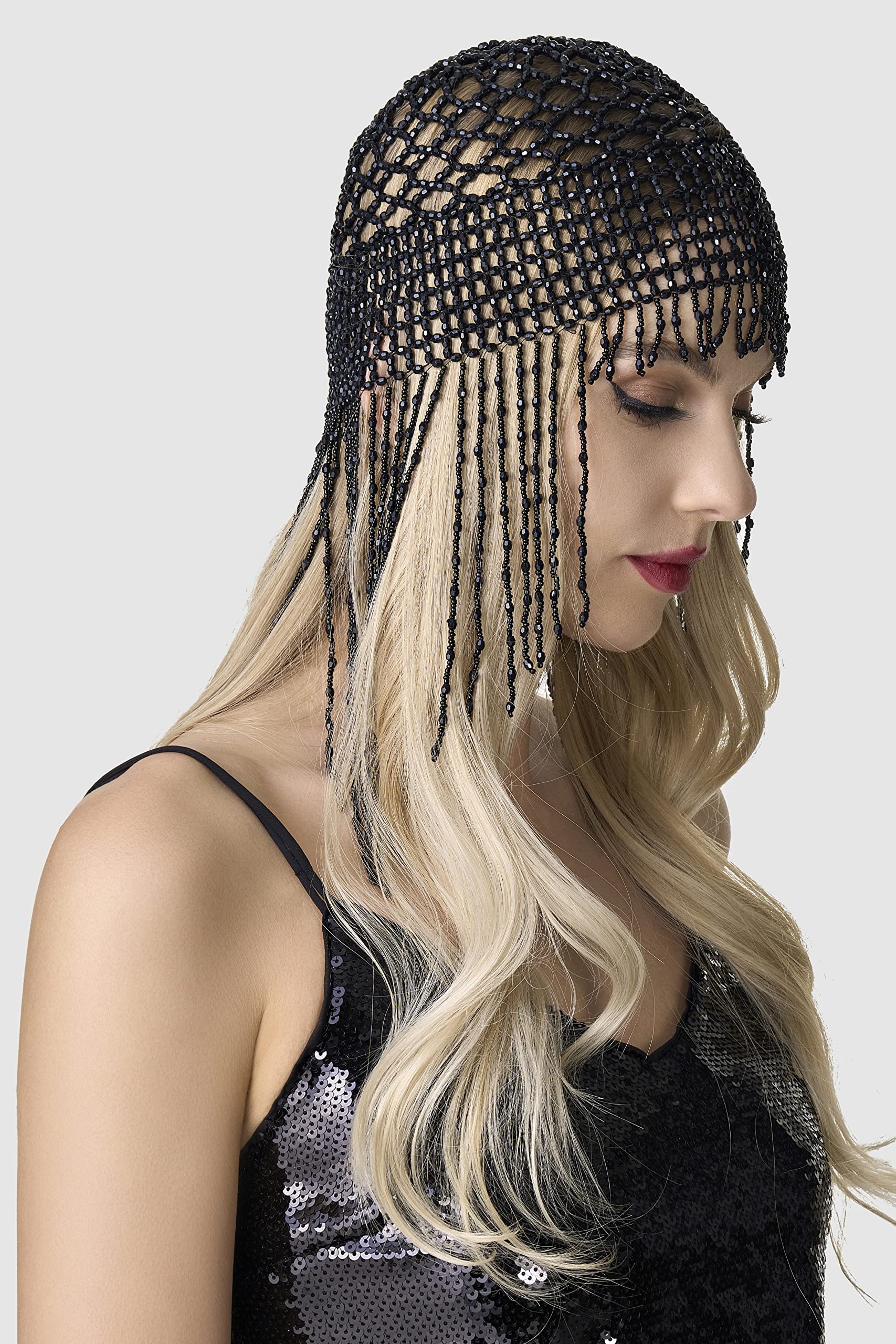 BABEYOND 1920s Beaded Cap Headpiece Roaring 20s Flapper Belly Dance Cap Exotic Cleopatra Headpiece for Gatsby Party (Black)
