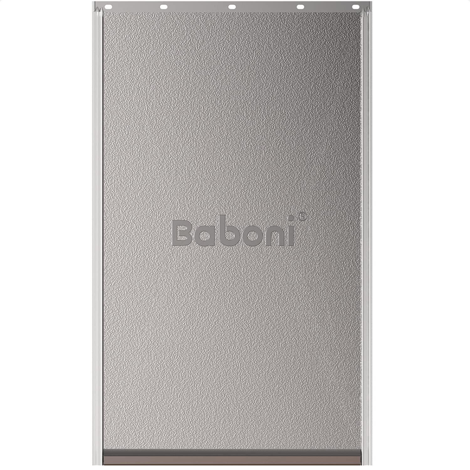 - Compatible With Baboni Large pet door: Flap opening is 10 1/8 in x 16 7/8 in with 5 holes at the top of the flap for adjustment.