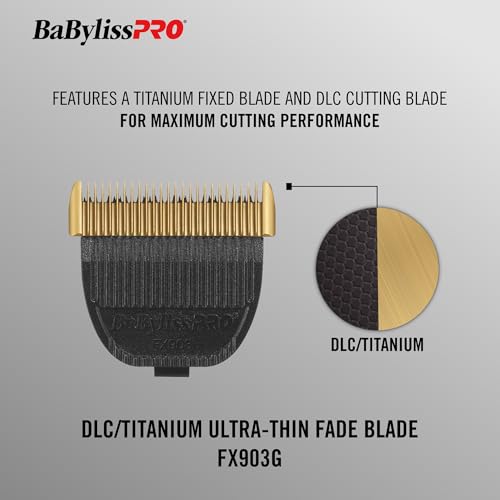 Details: The FX3 Collection is the 3rd generation of Ferrari-powered products from BaBylissPRO. Every item features advanced high-torque engines, ultra-sleek ergonomic European housings, and unique embedded cardon texture grip surface. This DLC/Nickel Titanium Ultra-Thin Fade Blade offers high hardness and a lower blade temperature and can be used with FXX3C clippers. Use it for a precise, clean cut.