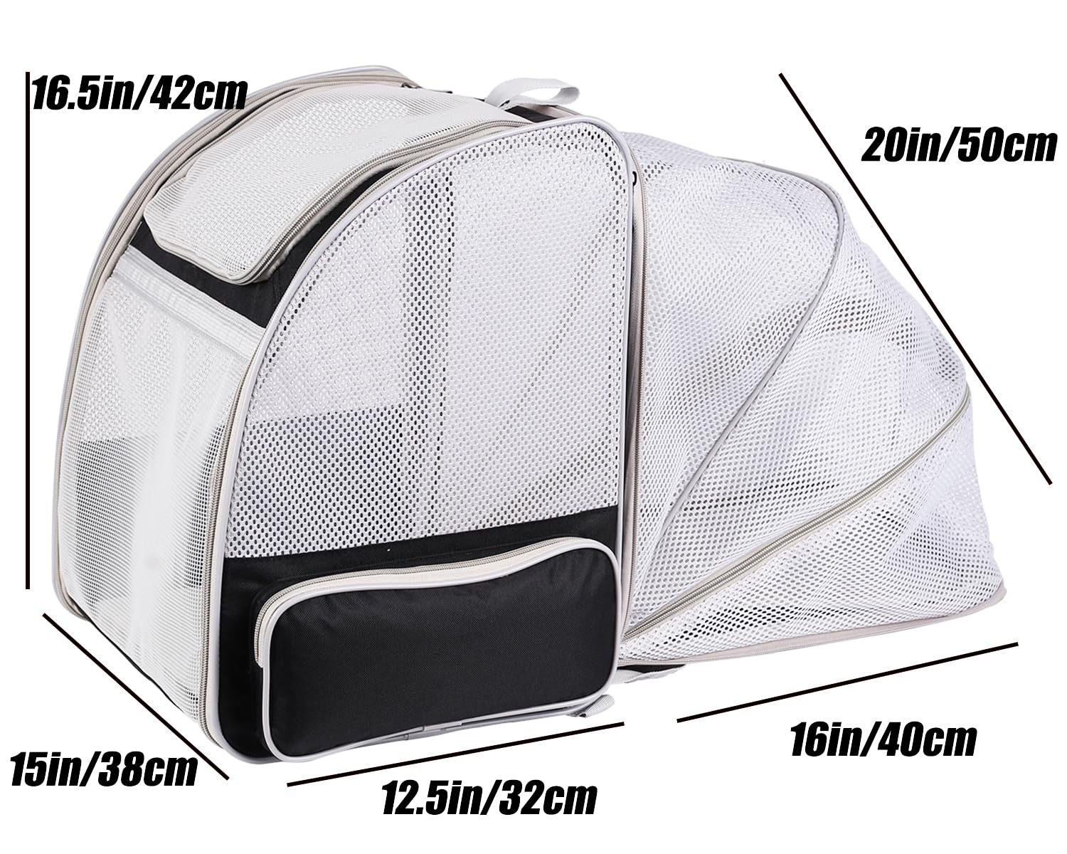 - This pet carrier backpack with an expandable back allows your pet to move around more comfortably and reduces the anxiety. And the carrier can collapse flat when not in use.