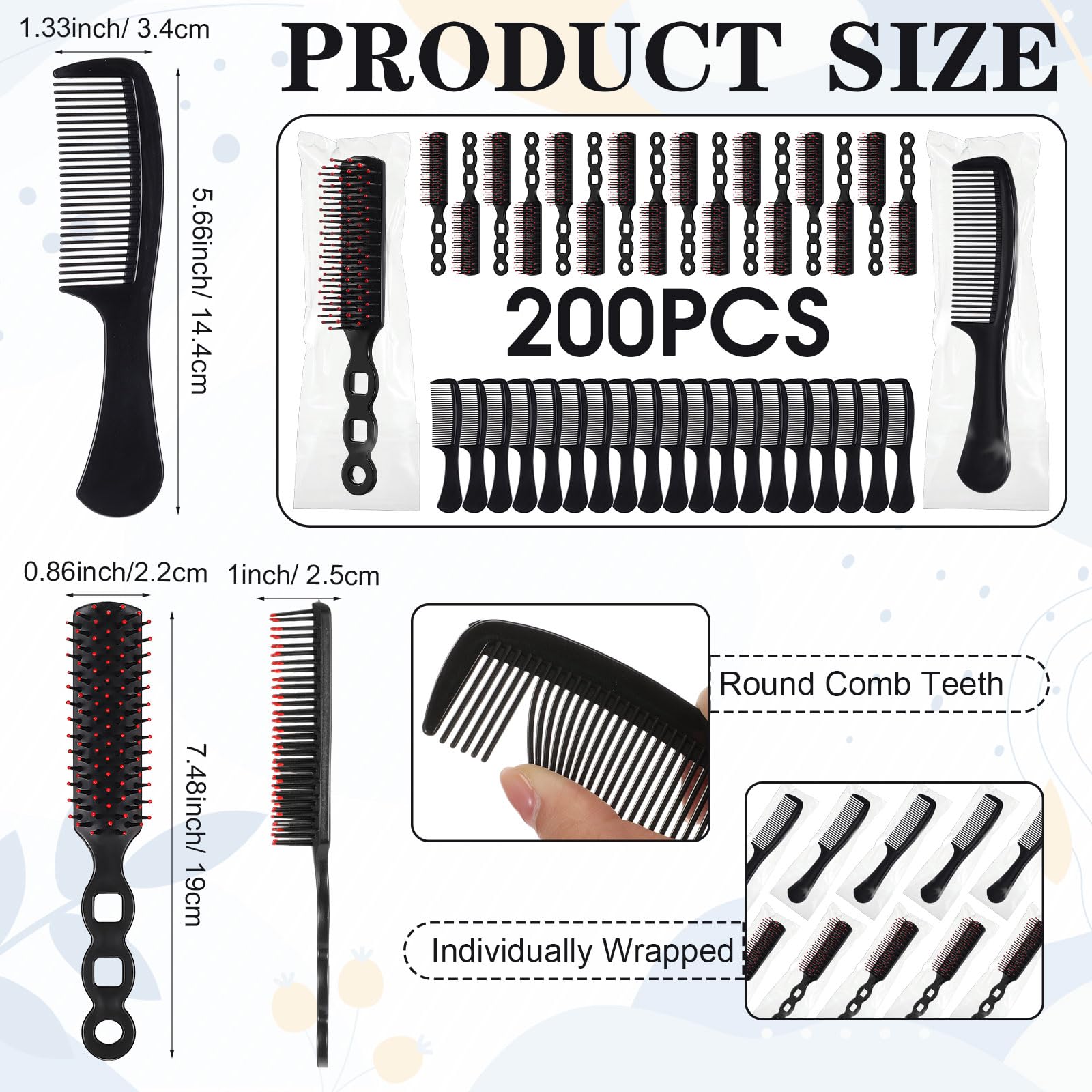 Baderke 200 Pcs Hair Brushes Bulk Combs Set for Homeless Individually Wrapped Bulk Brush Widen Combs for Curly Hair Suitable for Women Men Shelter Nursing Hotel Church Charity Supply(Black)