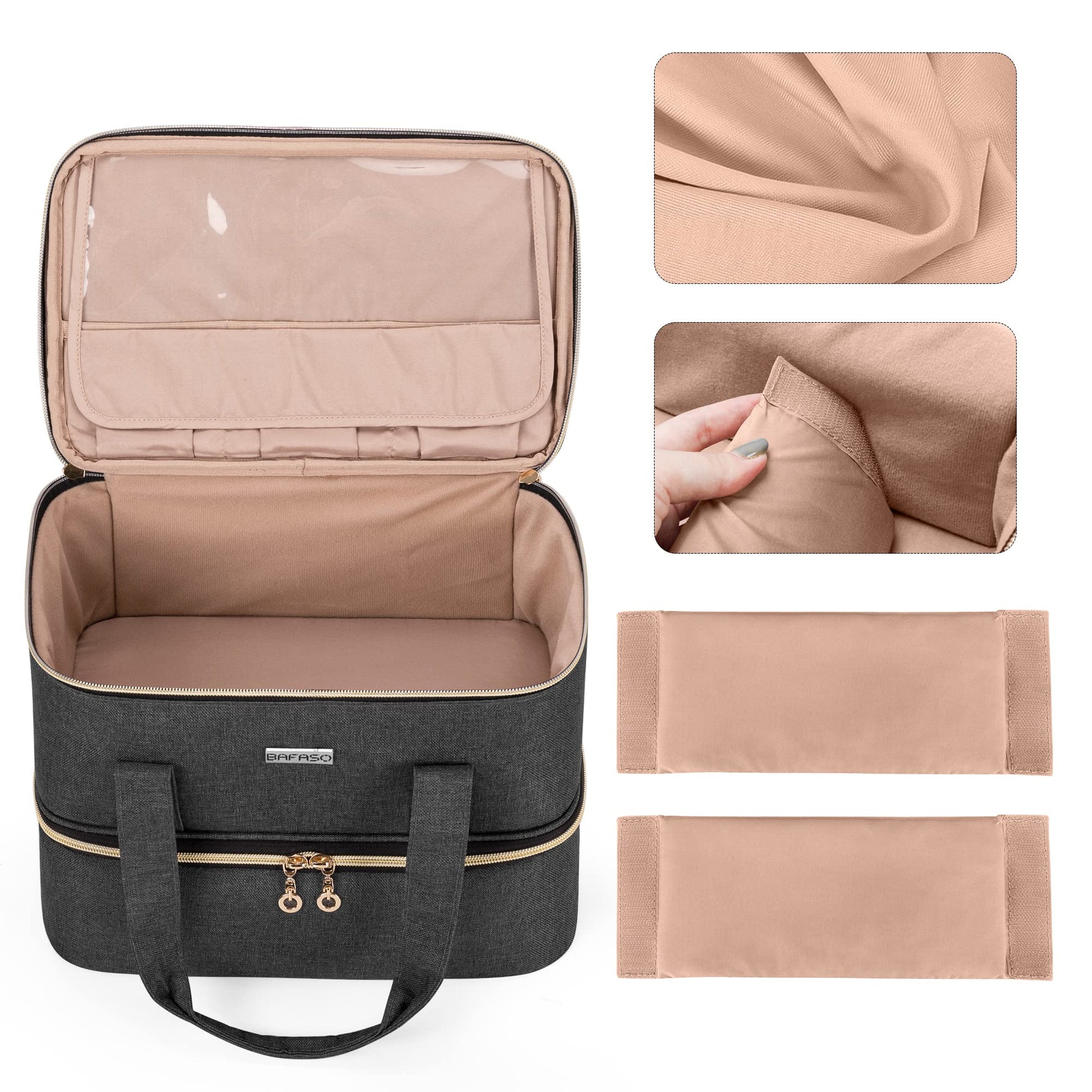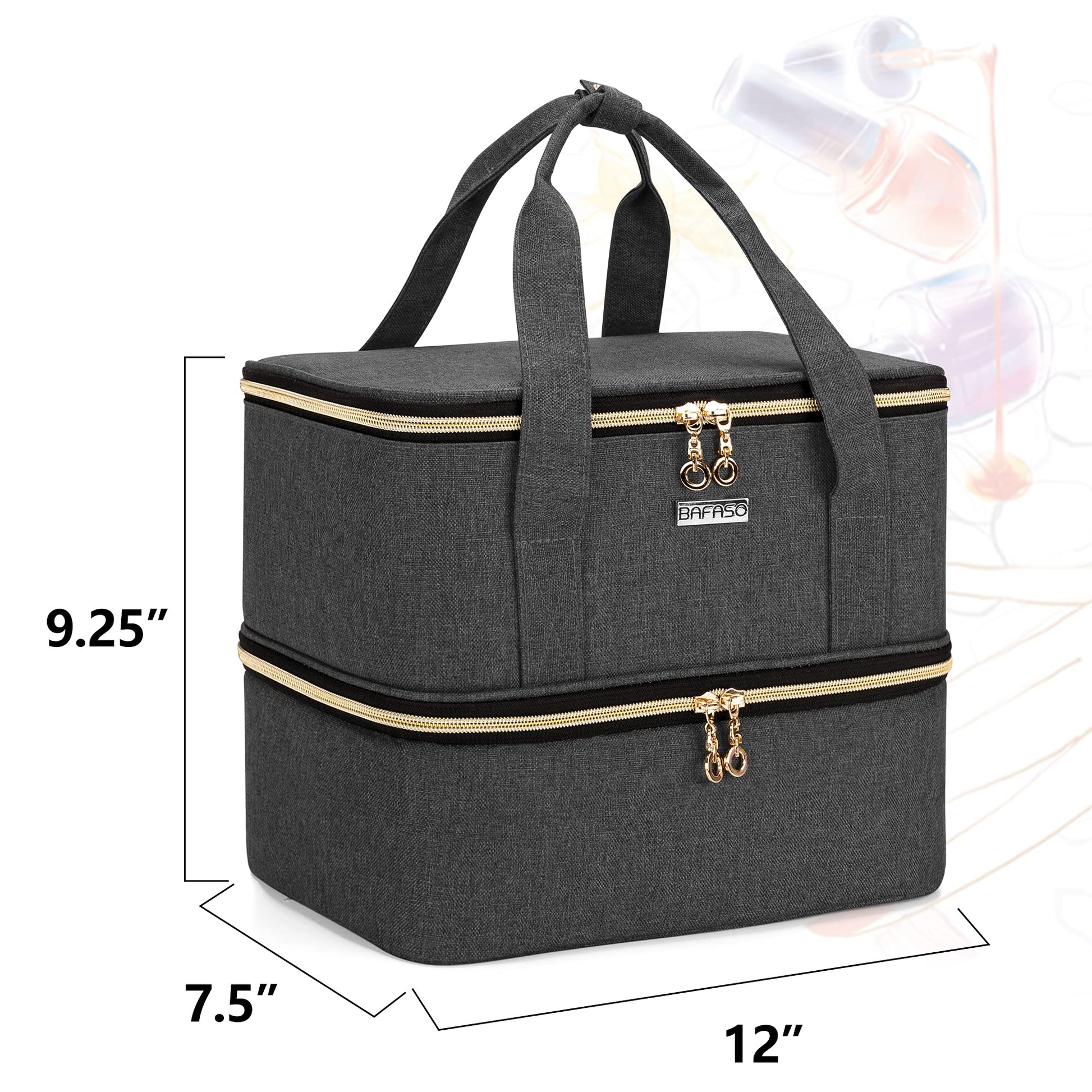 BAFASO Nail Polish Organizer Holds 40 Bottles (15ml - 0.5 fl.oz) and a UV Nail Lamp, Double Layers Nail Polish Case with Manicure Tools Storage Sections (Bag Only), Black, Patented
