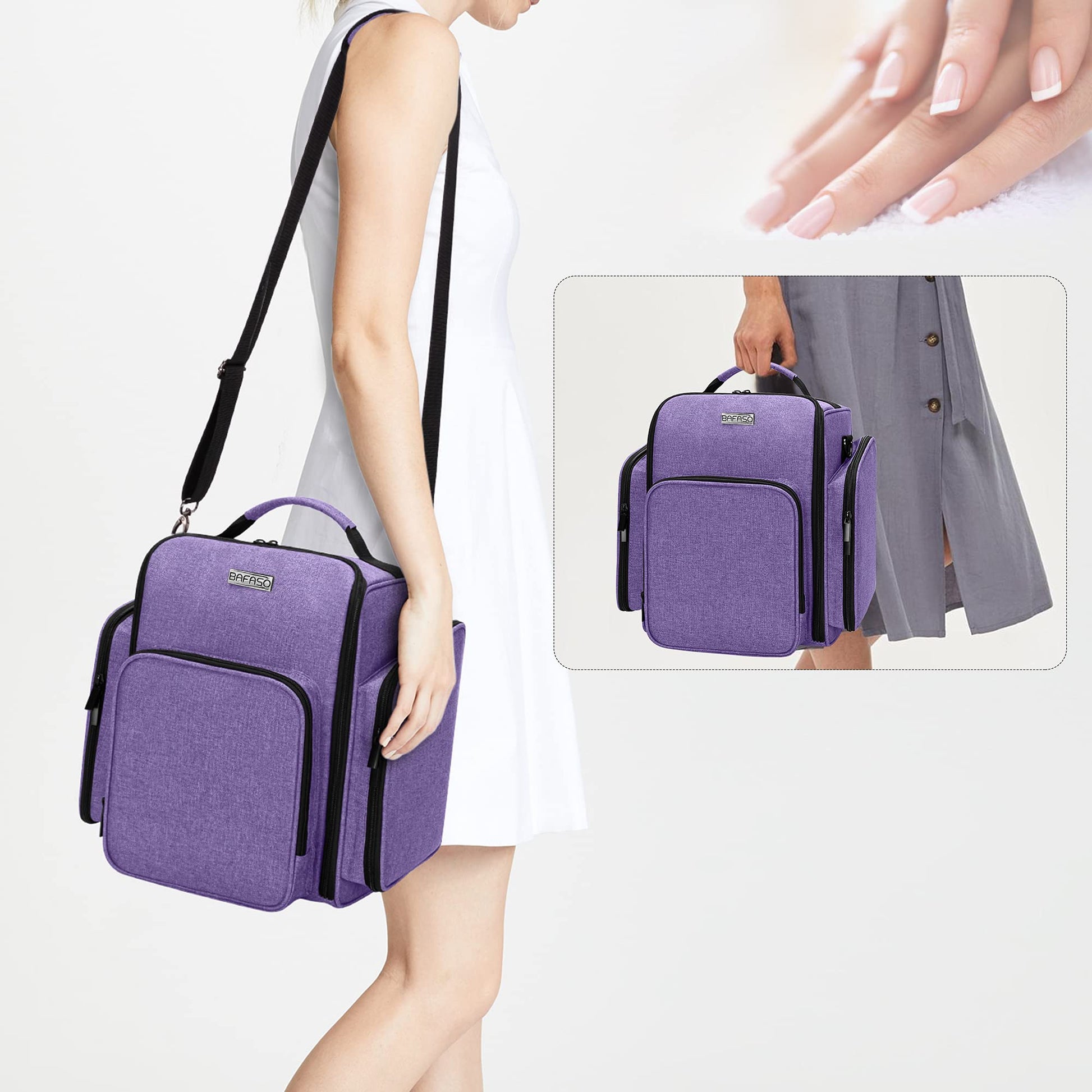 BAFASO Nail Polish Organizer Holds 72 Bottles (15ml - 0.5 fl.oz), Large Nail Polish Case with 3 Removable Pouches and Multiple Storage Sections (Bag Only), Purple, Patented