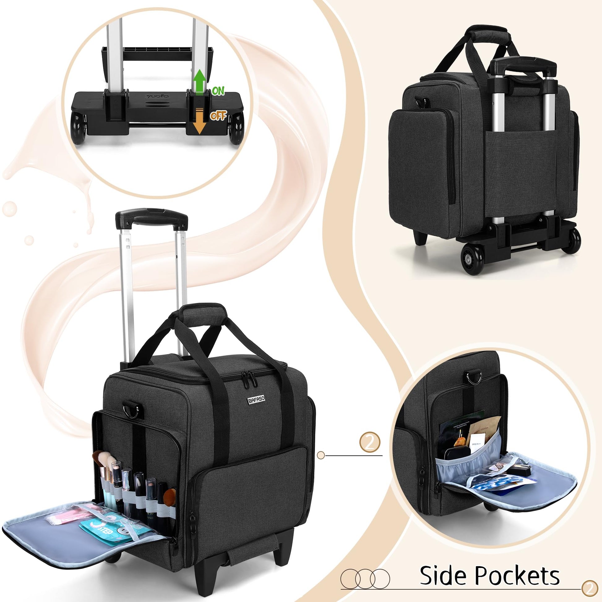 BAFASO Rolling Makeup Case with 3 Removable Pouches and 1 Makeup Brush Bag, Makeup Bag with Detachable Dolly (Patented), Black