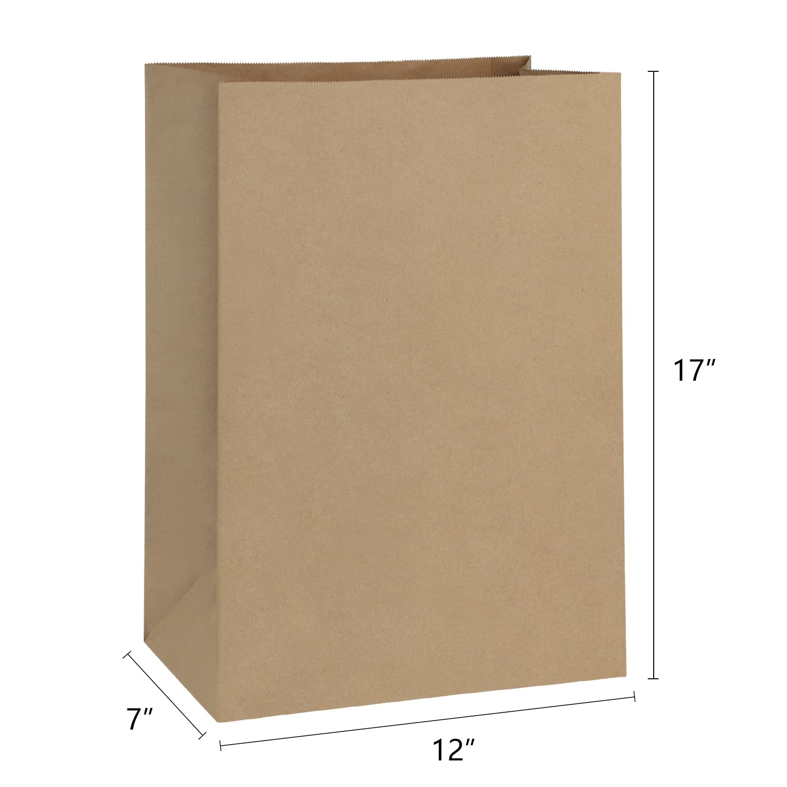 - Supermarket size grocery bags 12x7x17". Sturdier and more durable. If you're not satisfied with our paper grocery bags, please feel free to contact us.