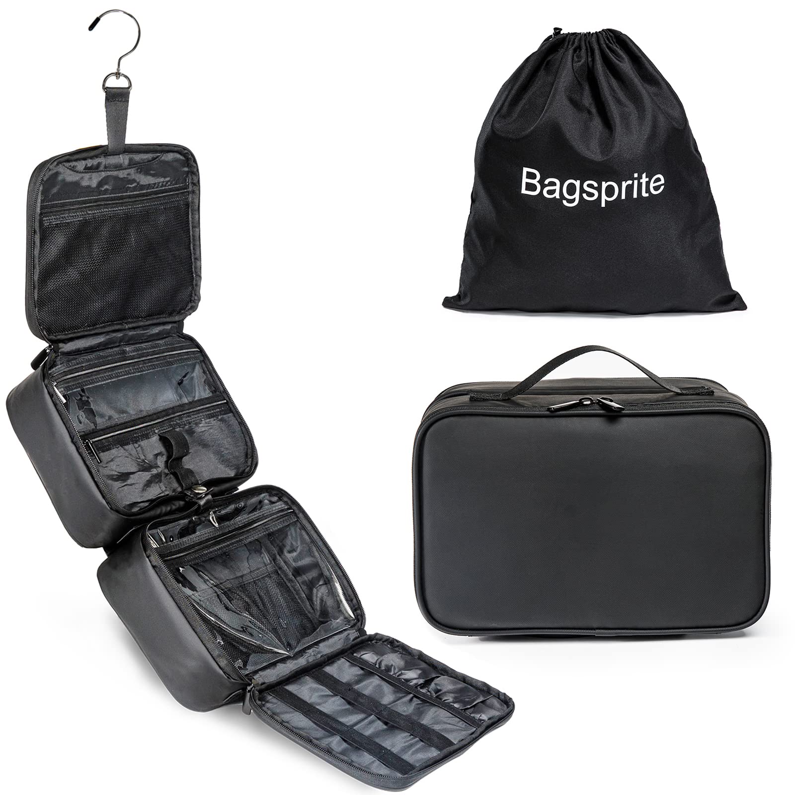 BAGSPRITE Large Hanging Toiletry Bag for Men and Women - Water-Resistant Travel Toiletry Bag - Makeup Cosmetic Bag Travel Organizer for Accessories, Shampoo, Full-size Container, 2IN1 Black