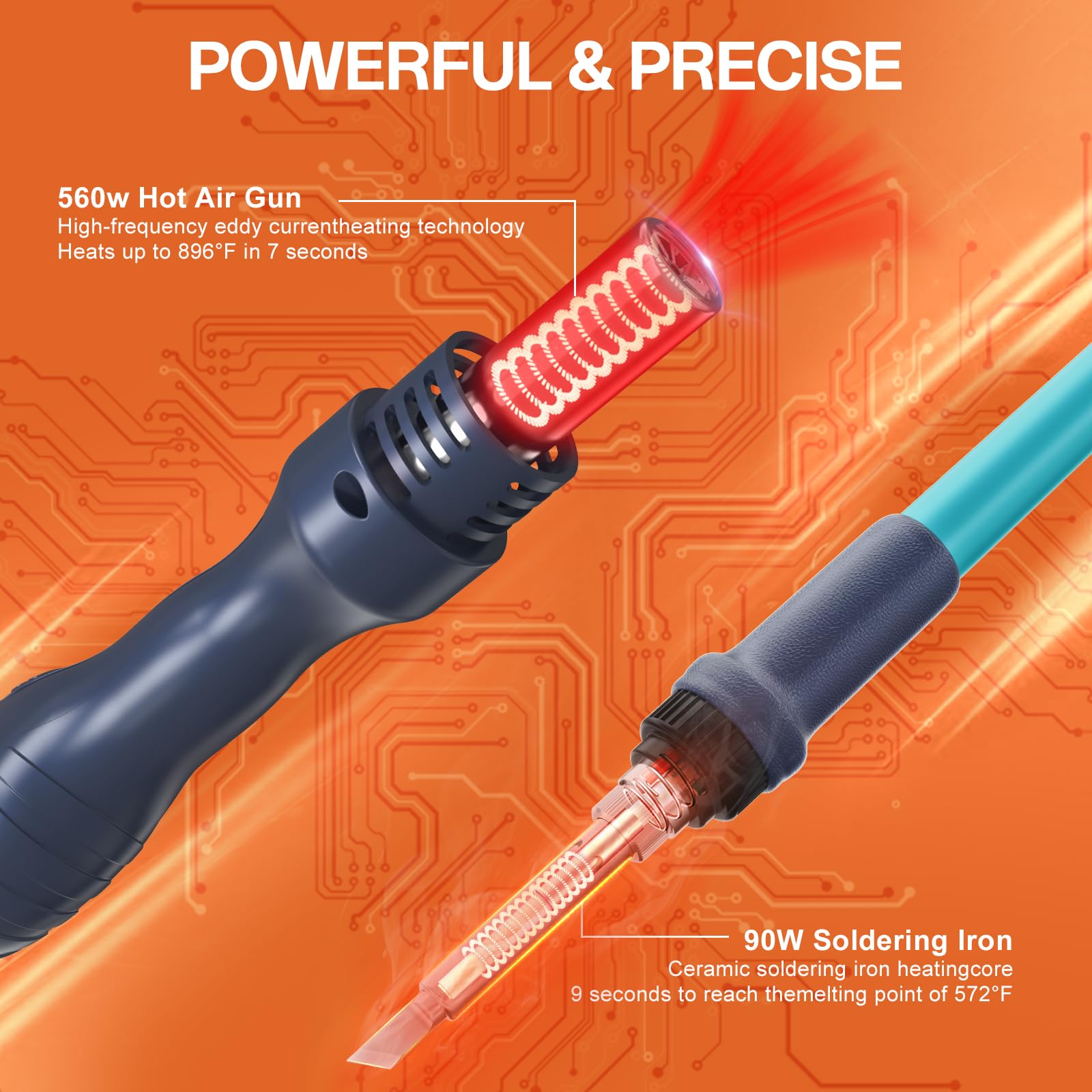 - 【2-IN-1Dual System Design】This 2-in-1 rework station combines the multi-purpose use of a 90W soldering station and a 650W hot air rework station. Provides dual display system and dual power switch, which can realize independent or simultaneous use of hot air function and welding function.Compact and durable