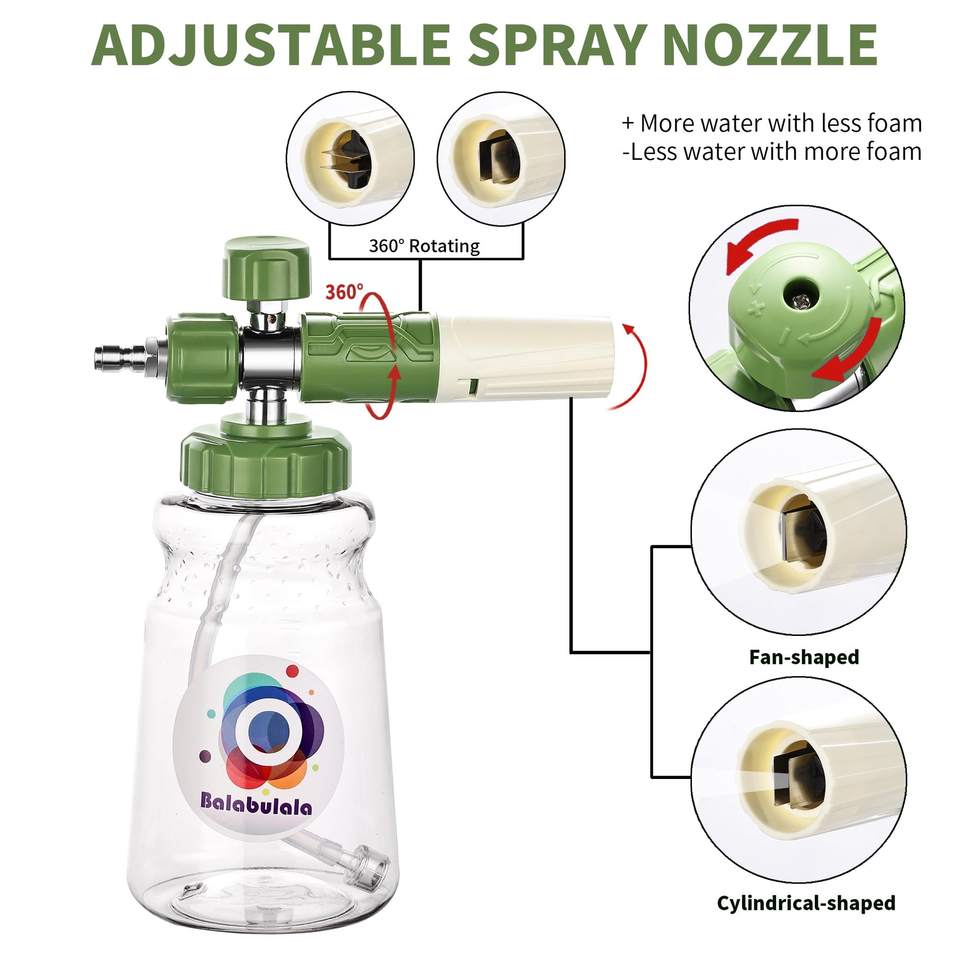 - QUALITY MATERIAL : Constructed from premium-grade materials, our power washer foam cannon connector promises exceptional durability and reliability for prolonged use. It's designed to be compatible with most pressure washers and foam sprayer in the market, making it a universally useful tool for a wide array of cleaning applications
