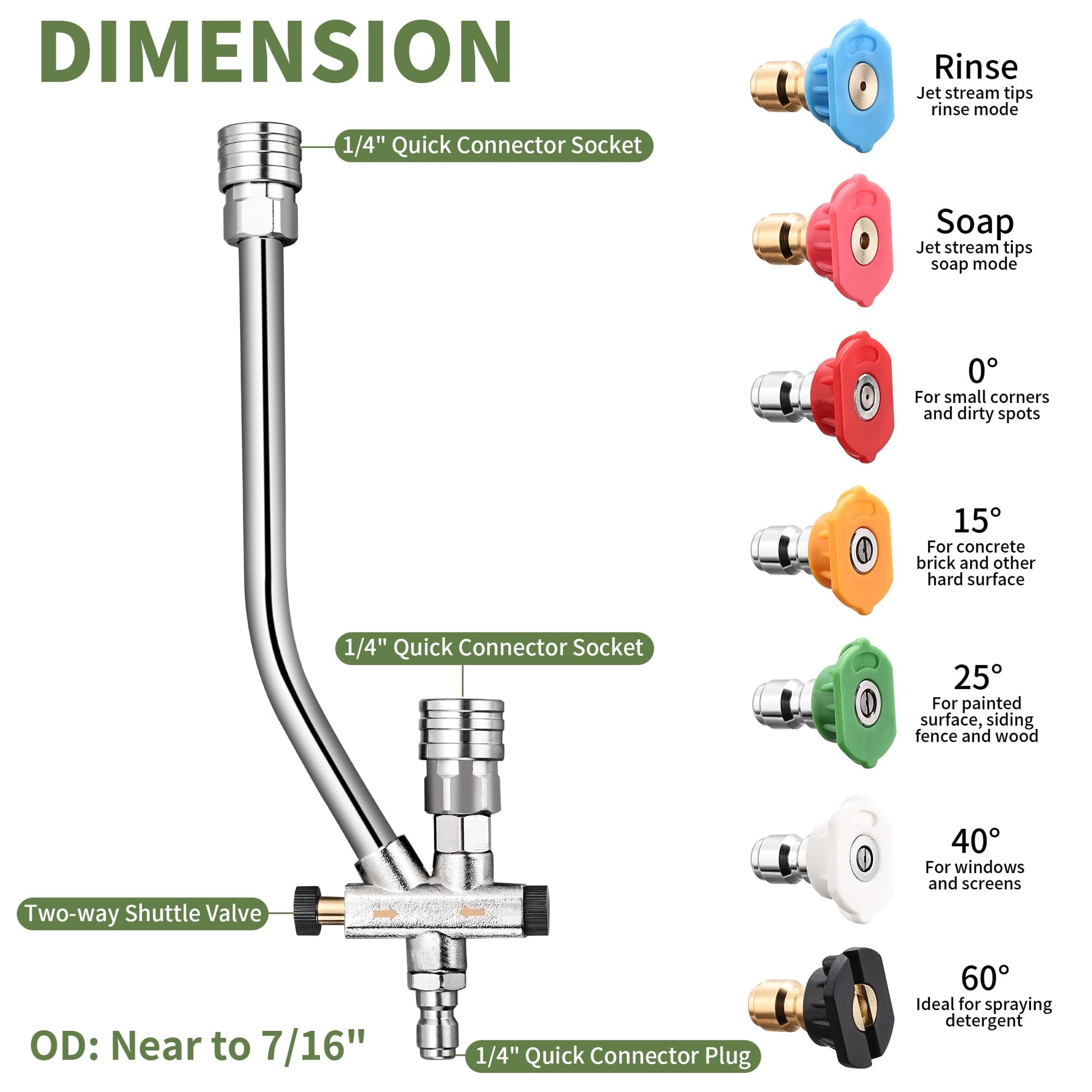 - MULTIPLE CHOICE CONNECTOR : Versatile tool features a unique design with two different connector ends - a longer one for the power washer nozzle and a shorter one for the snow foam lance. This strategic arrangement ensures unobstructed water flow when using the nozzle, even with the foam dispenser connected