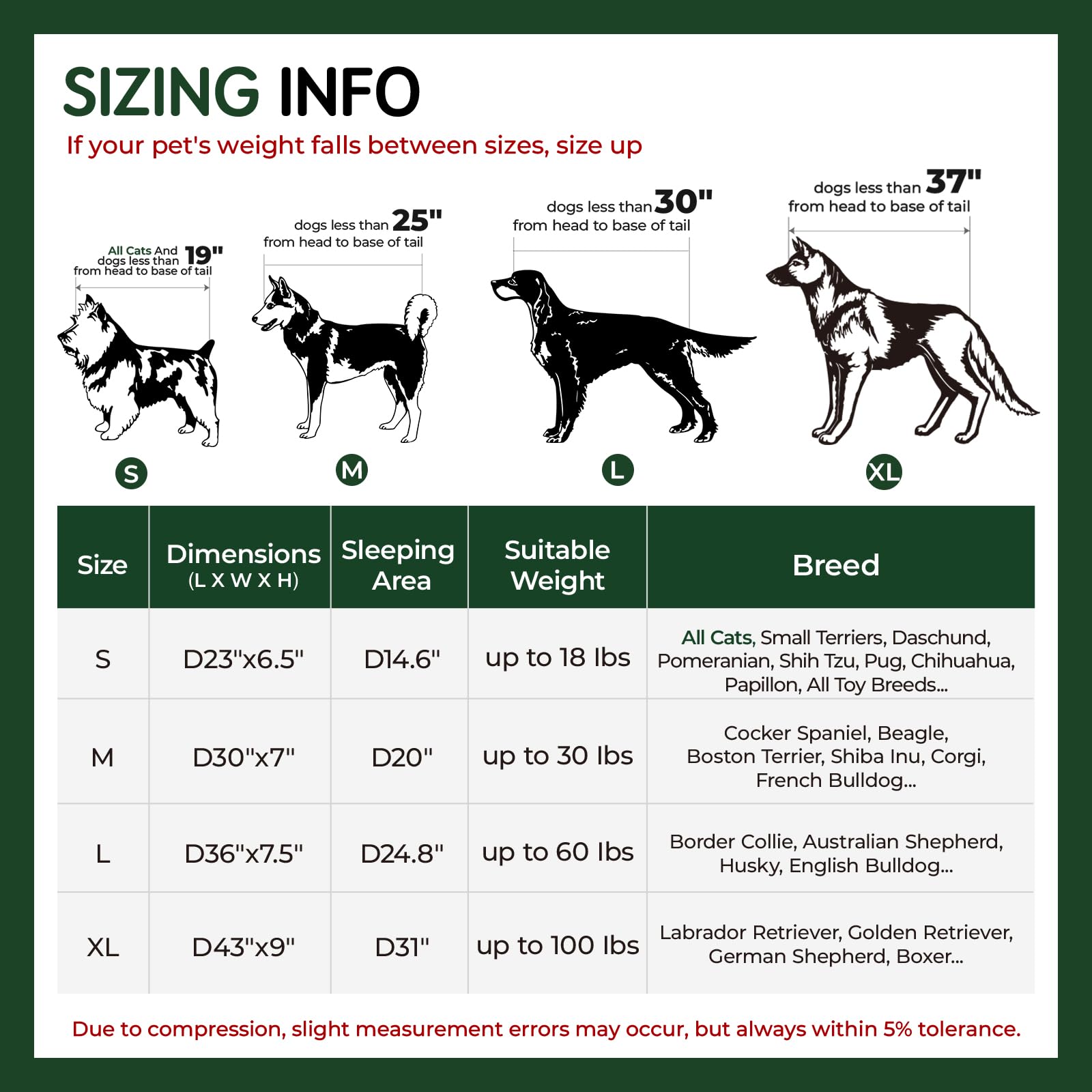 - Size Reminder: To ensure the best fit, please refer to the size guide and measure your pet’s length from head to base of tail before purchasing. Due to compression, slight measurement errors may occur, but always within 5% tolerance