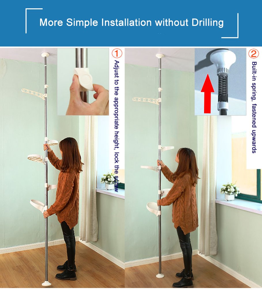 - PRODUCT SIZE(2 size):H(5ft8.9in-7ft8.5in) H(7ft6.5in-9ft6.1in) In The height can be adjusted by drawing the pipe,and you can adjust the height of the hangers also