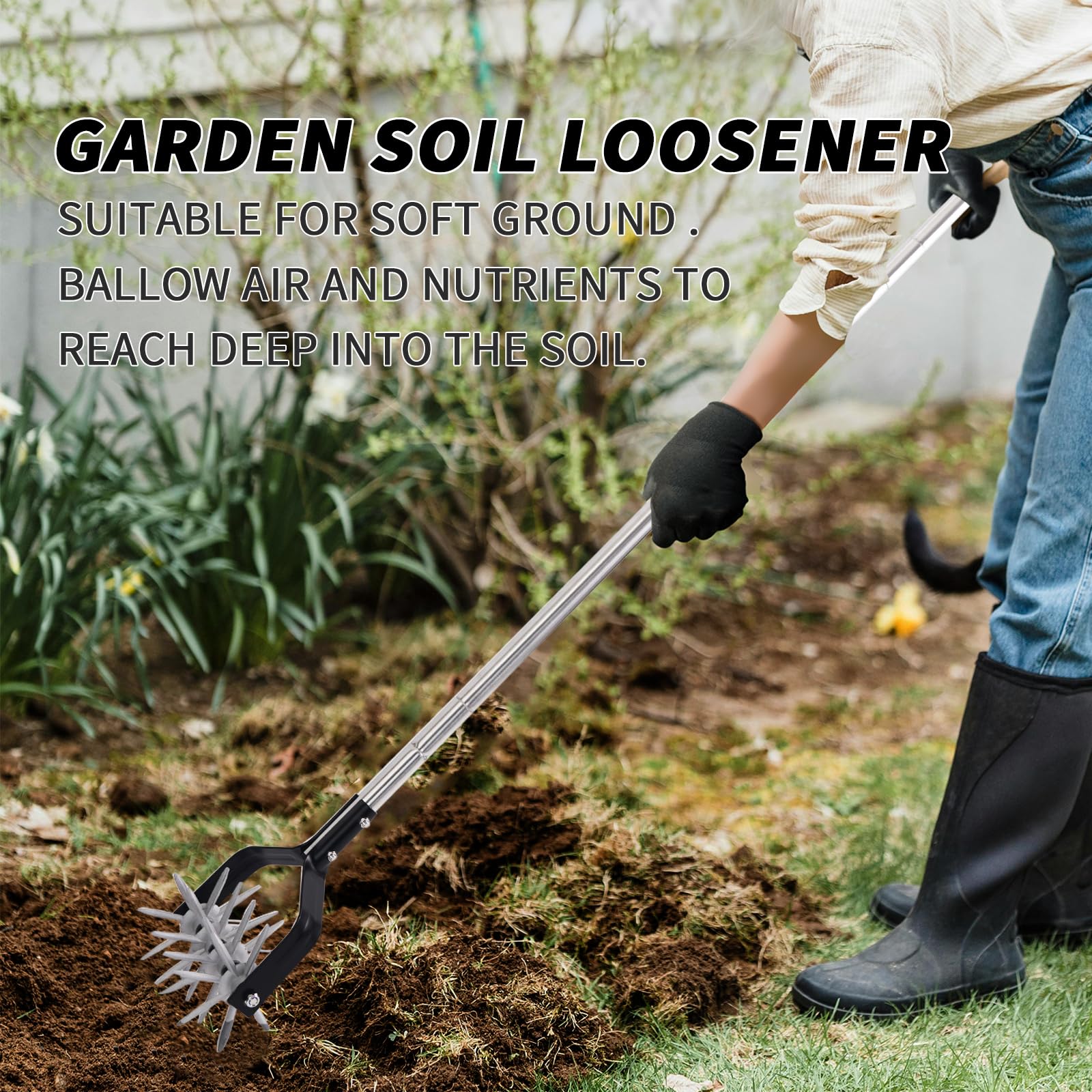 - 【Sturdy and Durable】: Garden cultivator is made of high-quality stainless steel and aluminum, which is sturdy, durable, wear-resistant, rust-proof, not easy to deform and break, and it can be used for a long time. With the help of 4 uniquely designed star wheels, the soil can be processed to achieve an extremely fine degree of crushing.