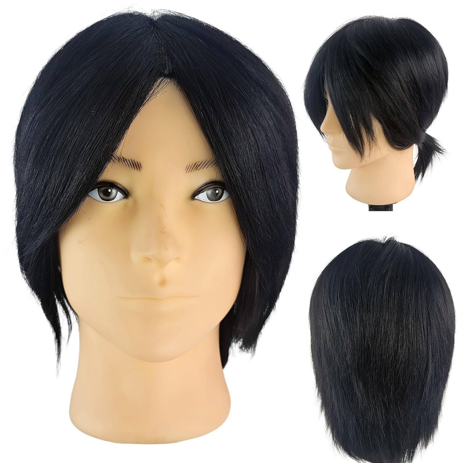 Barber Mannequin Head Male Mannequin Head Human Hair for Styling Black Hair Mannequin Head Practice Kit for Practicing Hair Cutting