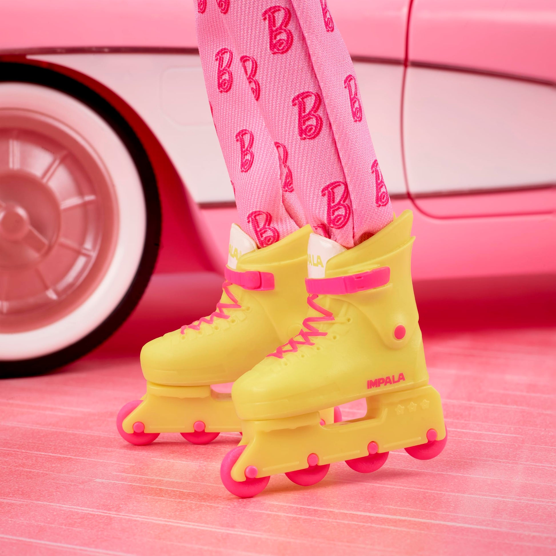 Barbie The Movie Ken Collectible Doll, Ryan Gosling as Ken Wearing Pink Jumpsuit with “B” Detail with White Sneakers and Multicolor Roller Skates