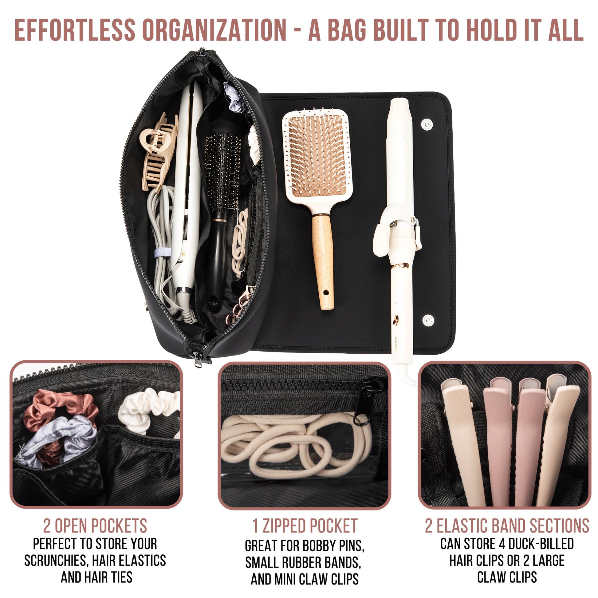 - Versatile Interior Storage Pockets – Our curling iron holder features two interior pockets, one zippered pocket, and two elastic band sections for hair clips to keep all your hair essentials in one place at home or when you’re traveling.