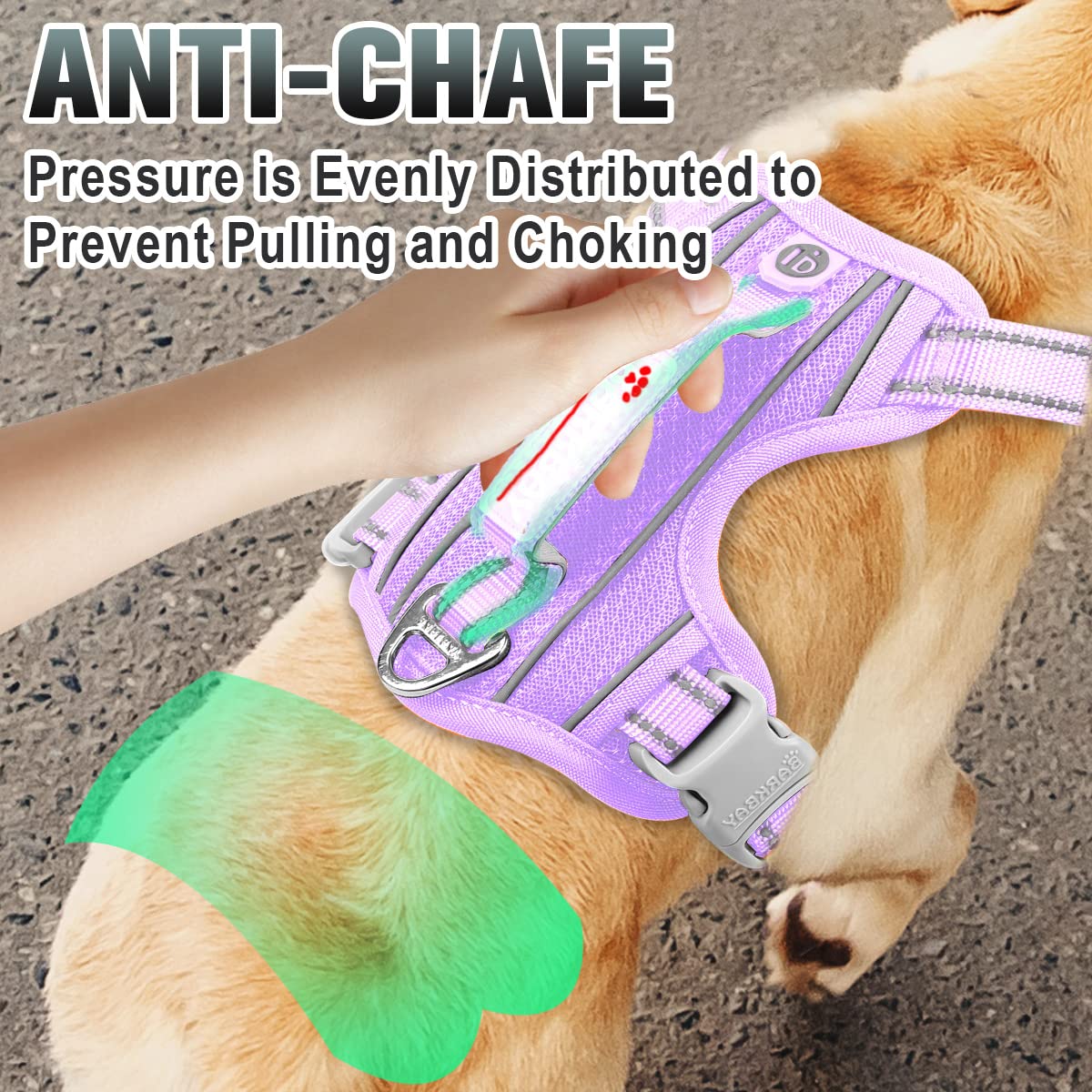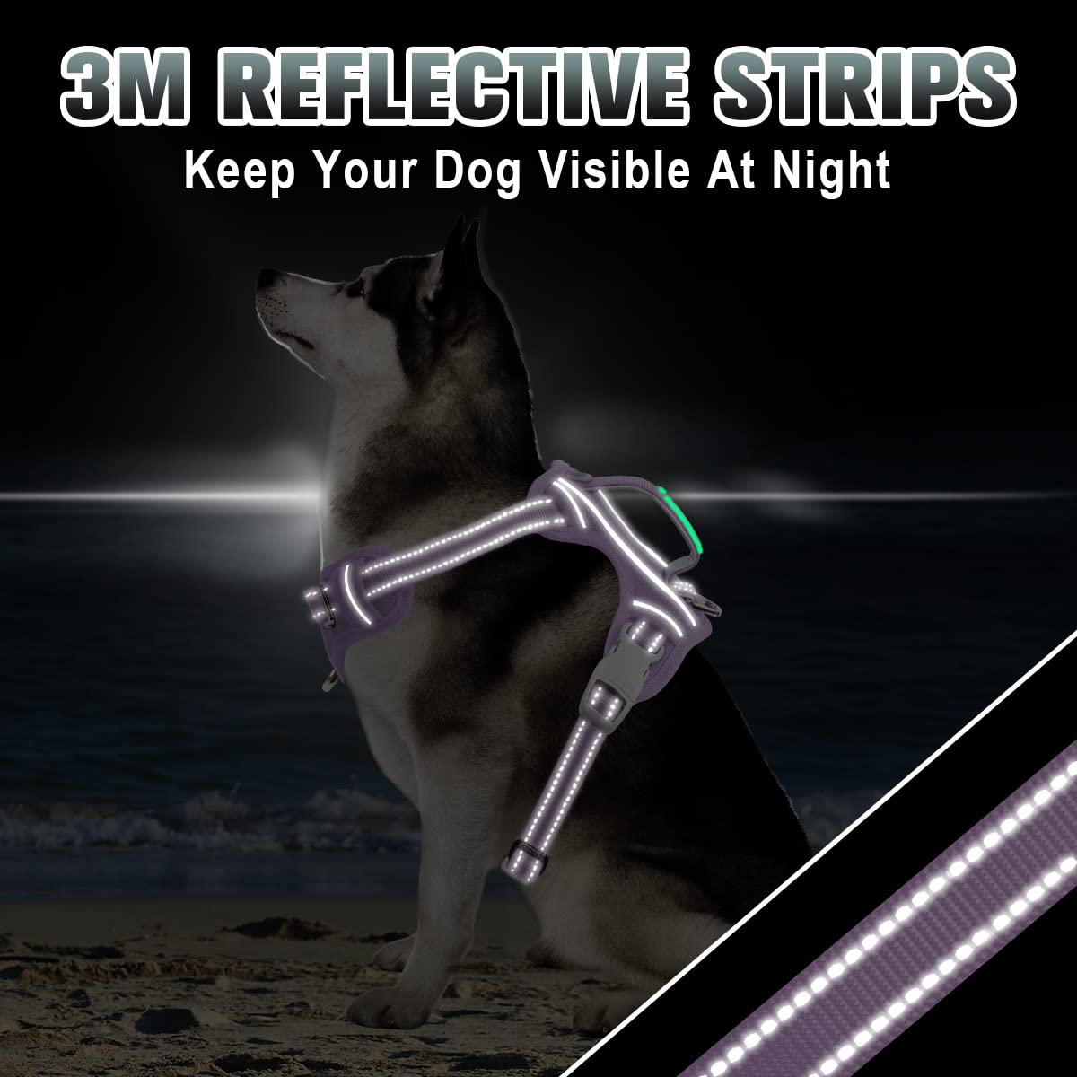 BARKBAY No Pull Dog Harness Large Reflective Dog Harness with Front Clip and Easy Control Handle for Walking Training Running with ID tag Pocket(Violet Purple,L)
