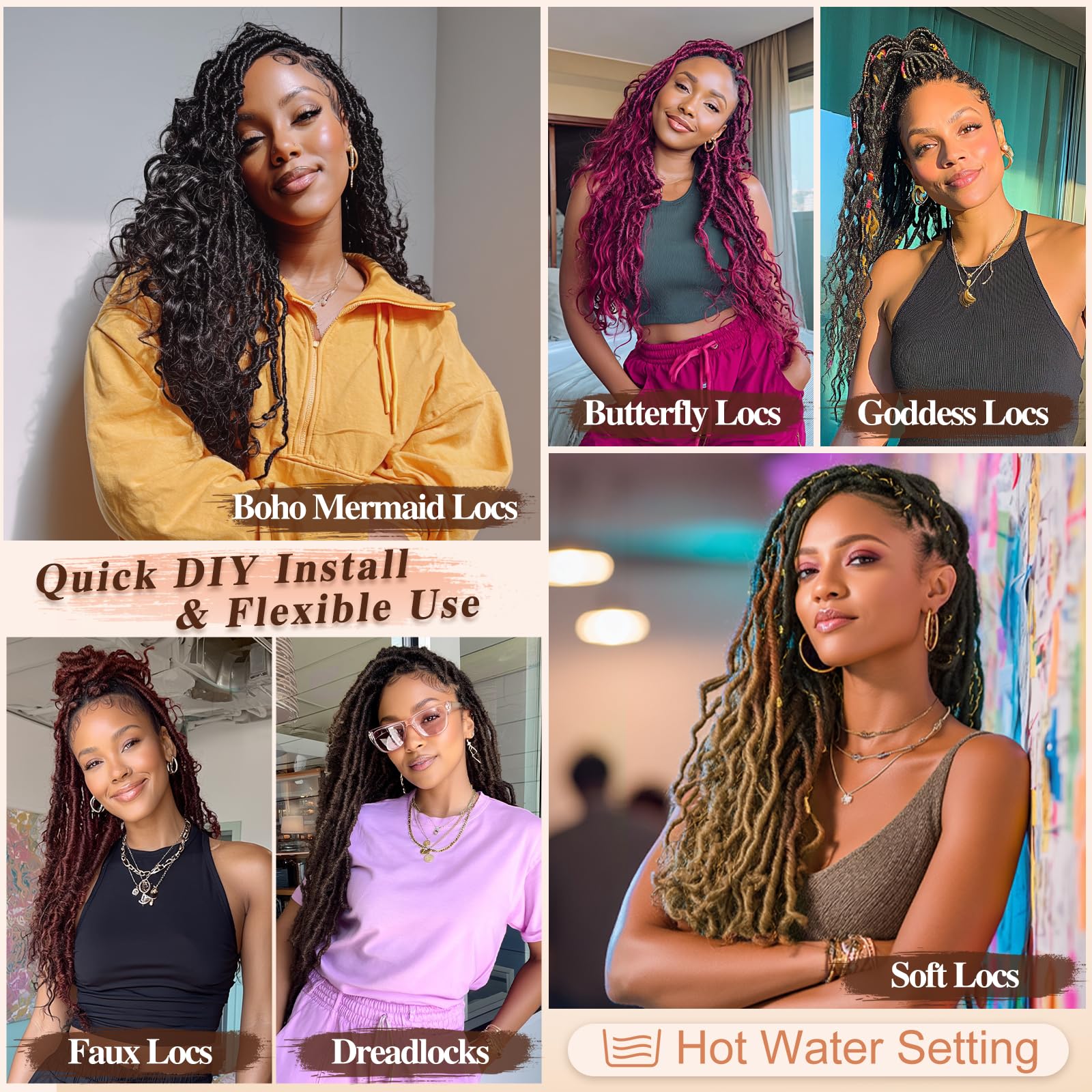 - Soft & Realistic Hair Texture: Crafted with premium heat-resistant synthetic fiber that closely mimics the look and feel of real locs; each strand is lightweight, soft and smooth; tangle-free, non-shedding and itchy-free for all-day comfort and easy styling