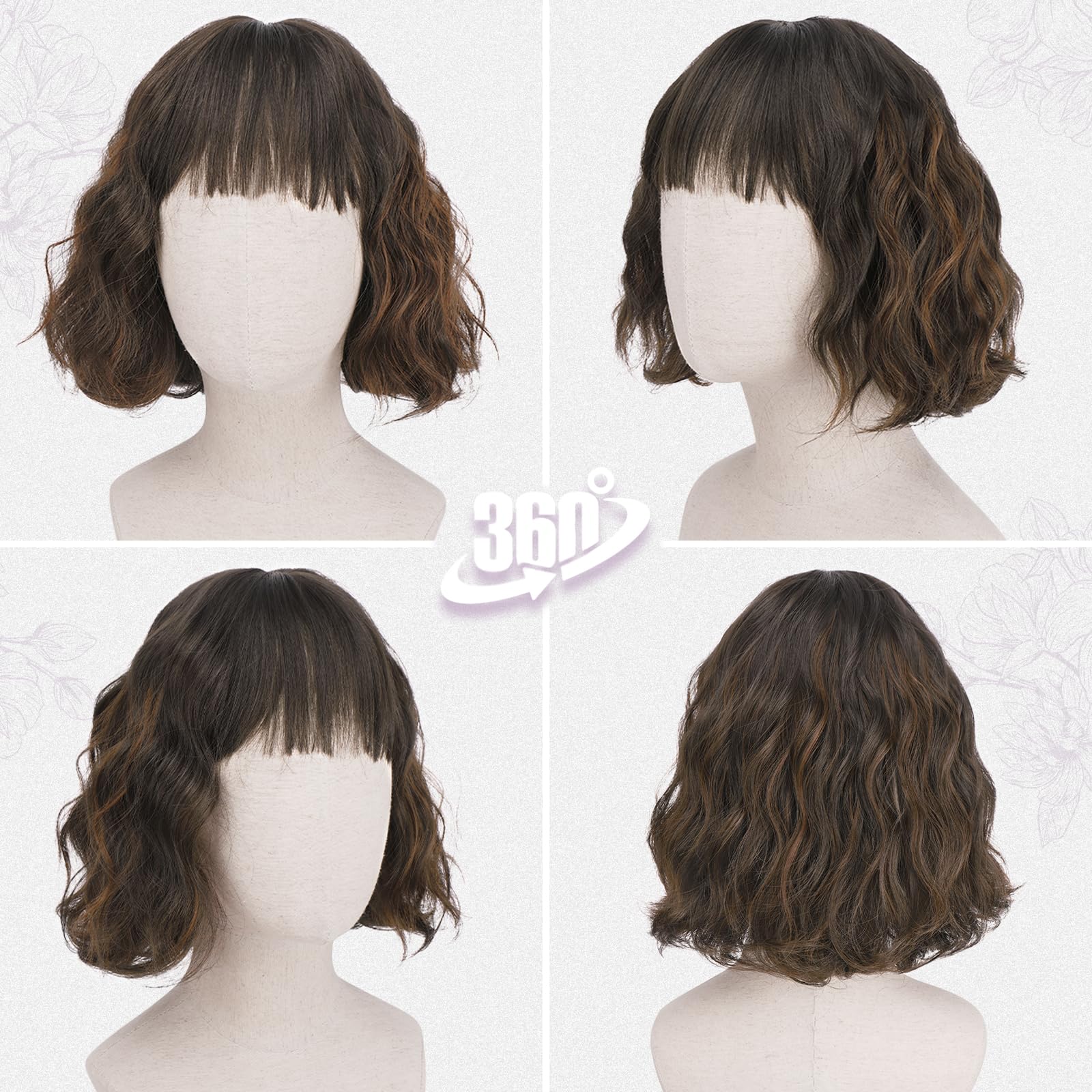 - Soft Waves & Natural Texture: Made from premium heat-resistant synthetic fiber with a soft, natural texture; 12-inch mix brown French bob features layered waves and face-framing bangs; delivers volume and movement with a realistic scalp for effortless daily style