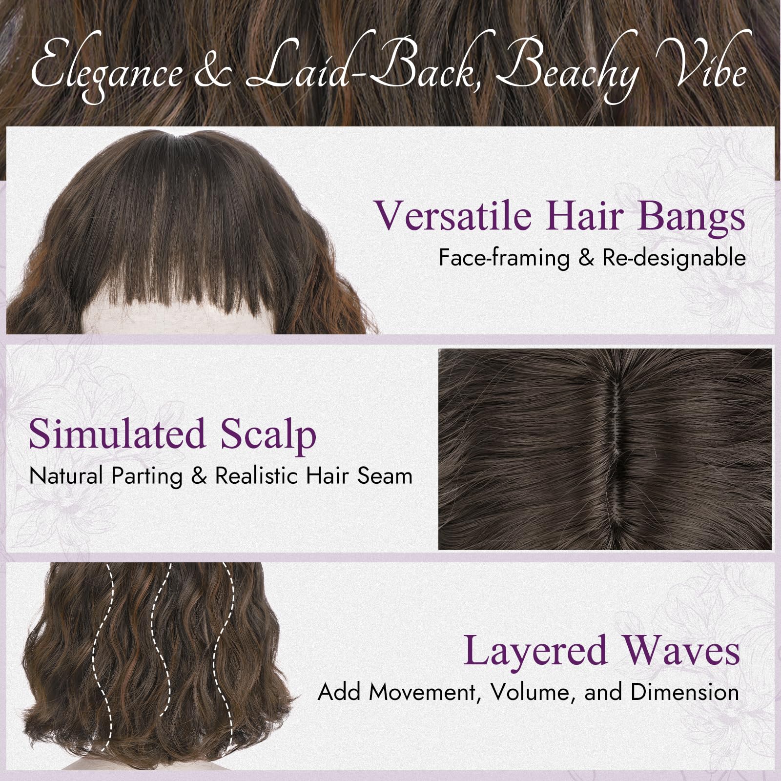 - Versatile Style for Any Occasion: Perfect for office, parties, travel or special events; soft waves add bounce and femininity while bangs bring charm and dimension; suits a range of outfits and face types—elegant yet relaxed for all-day confidence