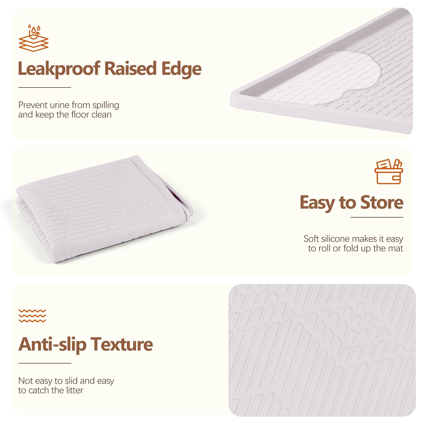 - Comfortable and Lasting Mat: The cat litter mat is made of high-quality silicone, offering a soft texture that protects your cat's paws. Silicone mat is not easy to deform, not easy to damage, and can effectively prevent water seepage, protect your floors.