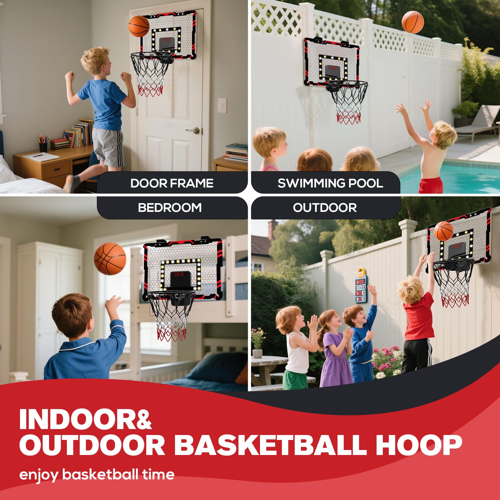 Basketball Hoops for Kids (4-12 Years Old), Indoor Basketball Hoop Wall Mounted with LED Lighting, Over The Door Basketball Hoop with Scoreboard & 3 Balls, Mini Hoops Basketball for Kids Toys
