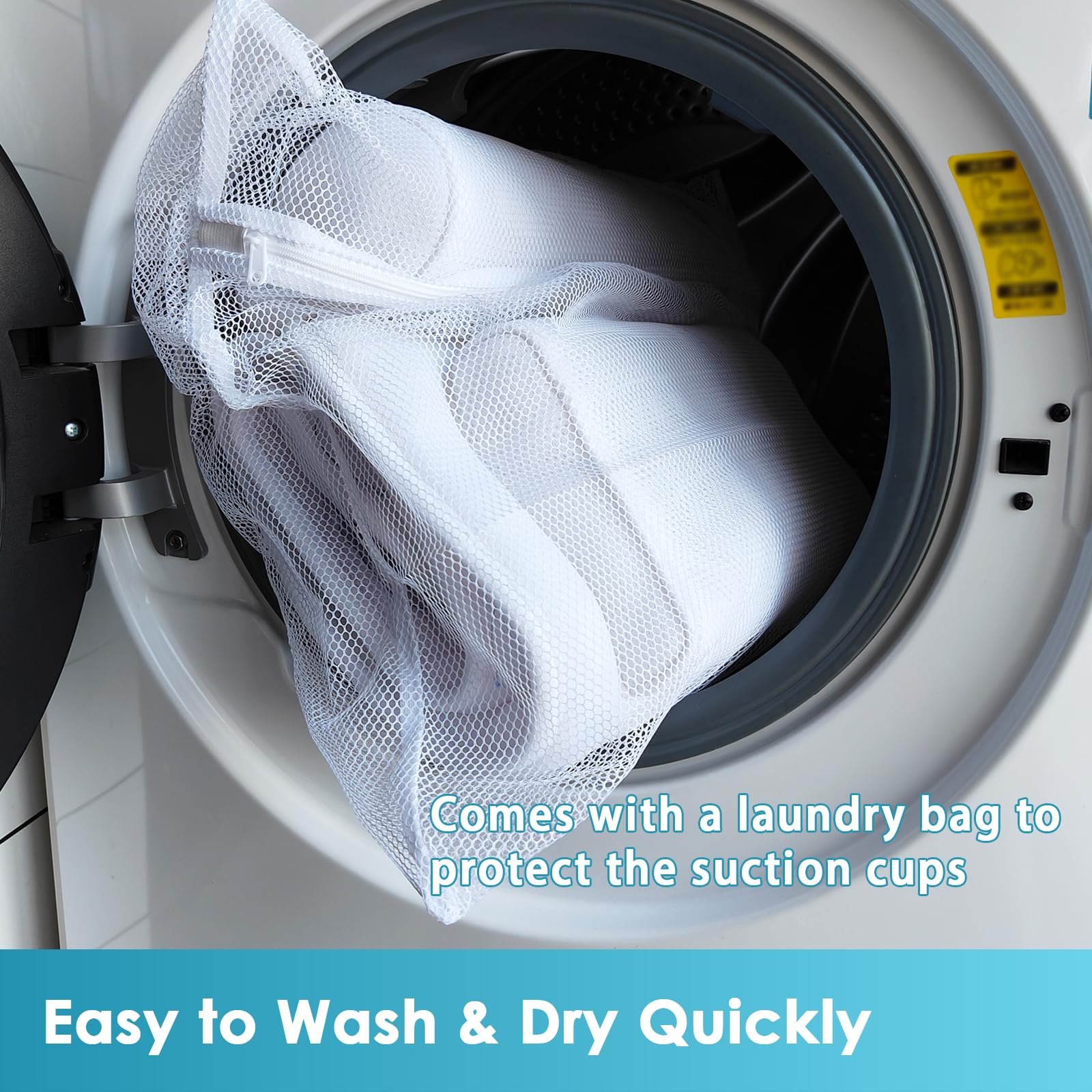 - ๐๐ช๐ฎ๐๐ต๐ฎ๐ฏ๐น๐ฒ & ๐๐ฎ๐ป๐ด ๐จ๐ฝ ๐๐ถ๐๐ต ๐๐ถ๐ด ๐๐ฟ๐๐ถ๐ป๐ด ๐๐ผ๐ผ๐ธ This Full Body bath pillow attached a big drying hook on the back. After your soaking bath time, you can hang it up with the hook. We also choose unique pearl white color air mesh fabrics for our full body tub cushion, which is high grade material. The full body bathtub cushion is machine washable and comes with a laundry bag