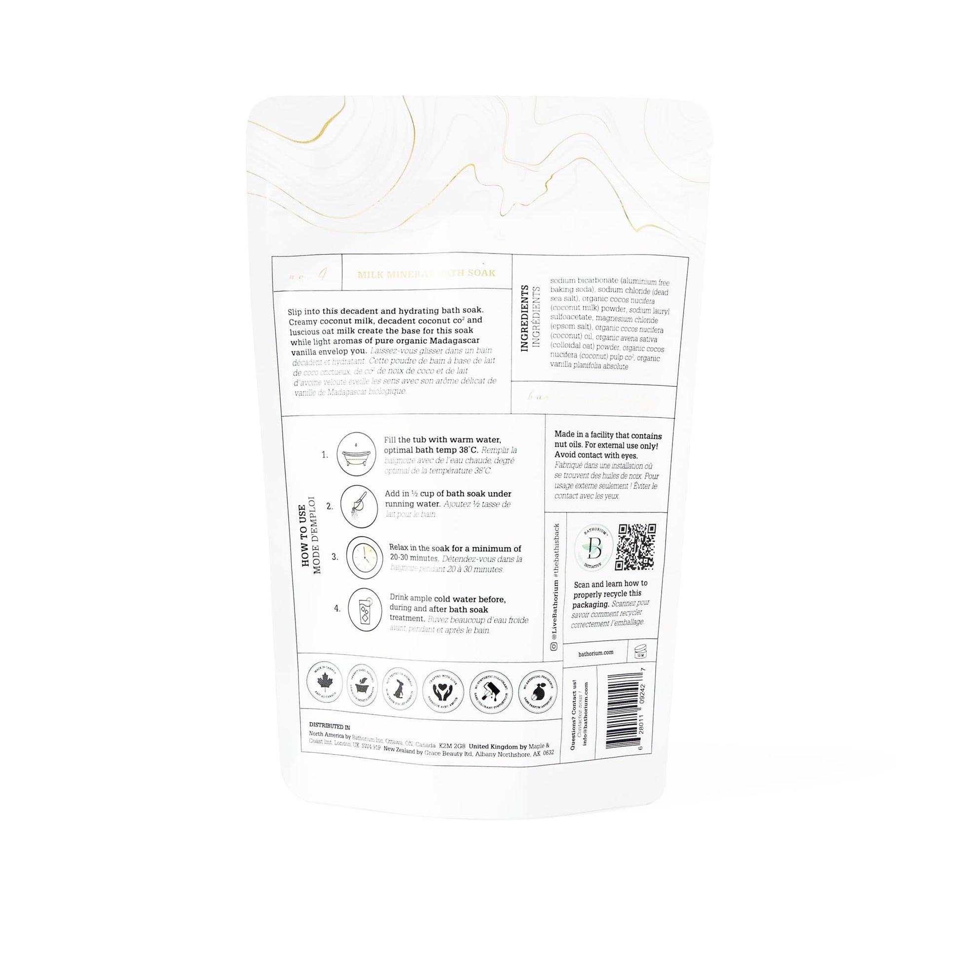 Bathorium Milk Mineral Bath Soak, Made with Coconut, Dead Sea Salt & Vanilla Bean CO2, Ideal for Hydration, Good for Sensitive Skin, 650g