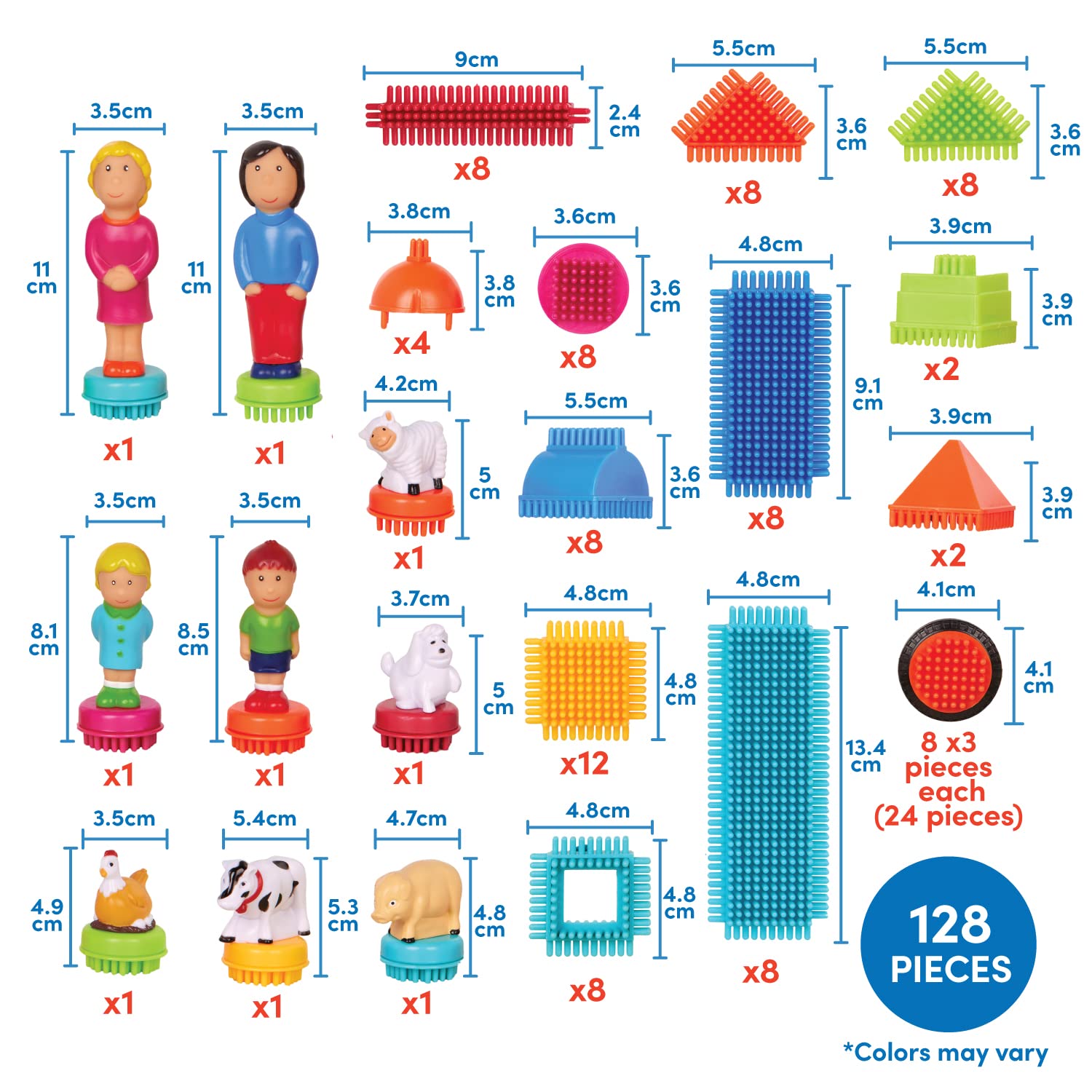 - Building Blocks: Featuring soft, interlocking bristles that stick together at any angle, these building blocks are designed for easy assembly!