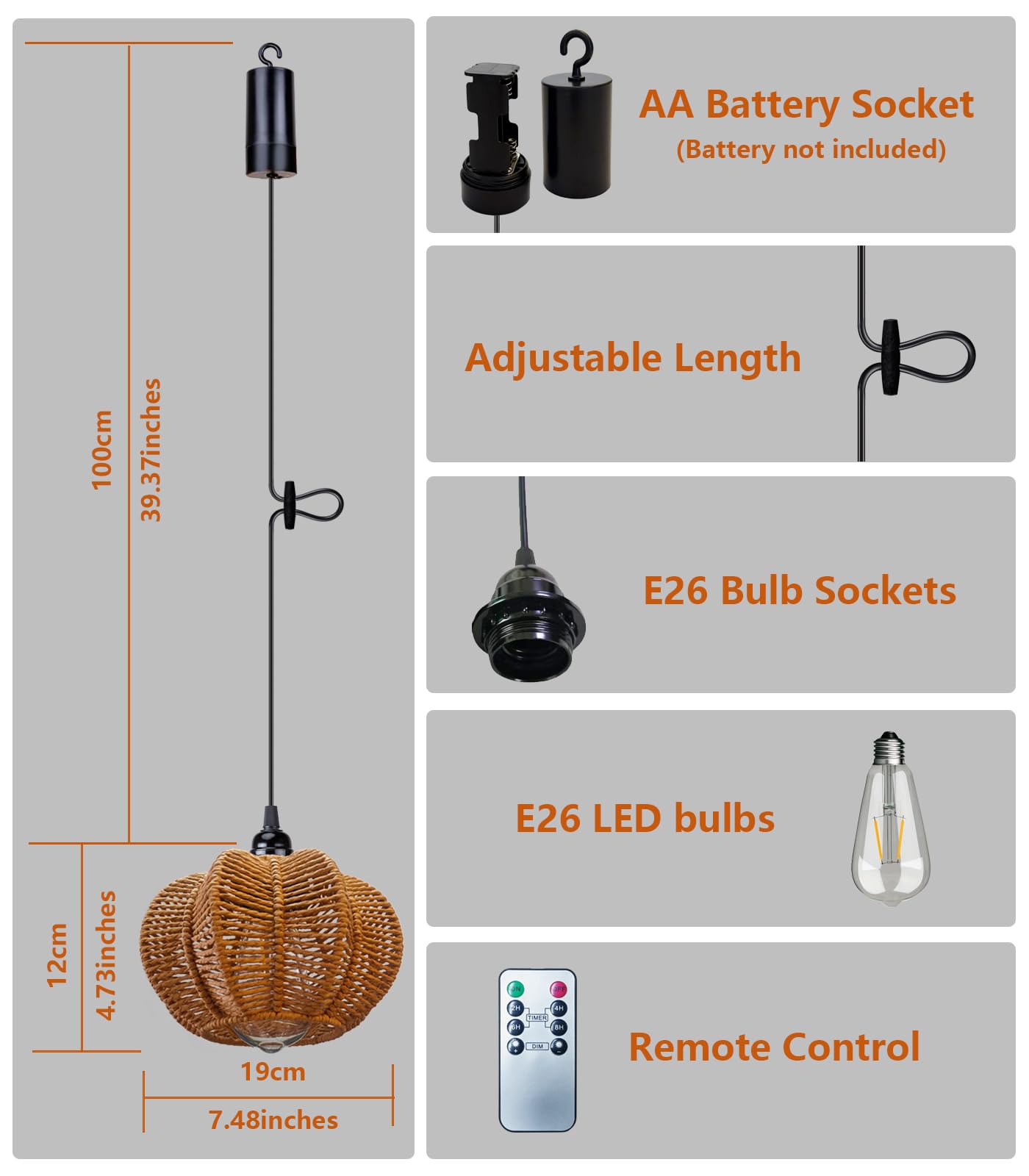 - No Wiring Outdoor Lights: The battery pendant lights are powered by 4 AA batteries(no wiring needed), equipped with replaceable E26 based LED bulbs. With hanging hooks on the top of the battery case, easy to install and operate(batteries Not included in the package).