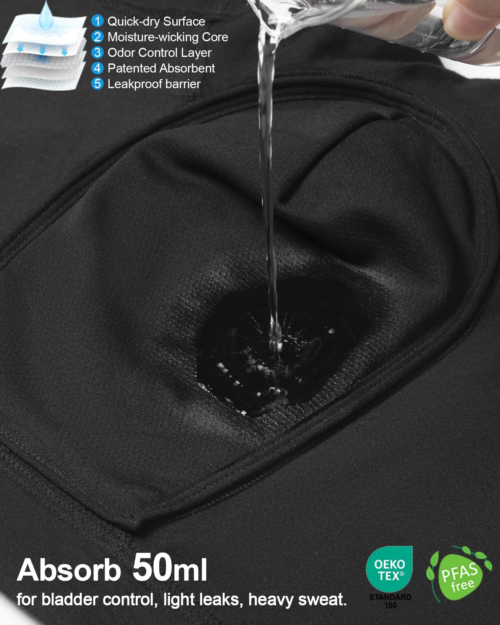 - OEKO-TEX Certified Material: Our men's incontinence boxer briefs are made from OEKO-TEX certified safe materials, ensuring comfort and safety for your health