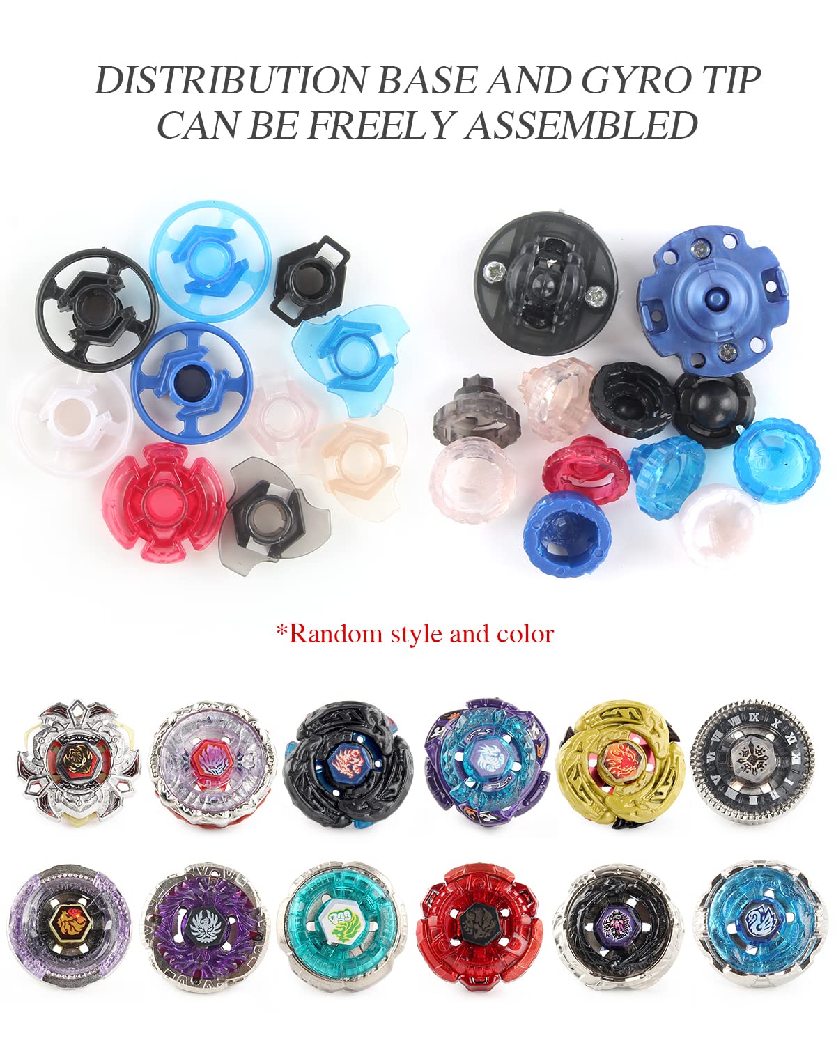 - [Package Contains] - This battling top set comes with 1x storage case, 12 battling tops, 12 sets of stickers and 3 launchers, making children have more choices to play. Additional complimentary distribution base and gyro tip can be freely assembled to increase the fun of the game