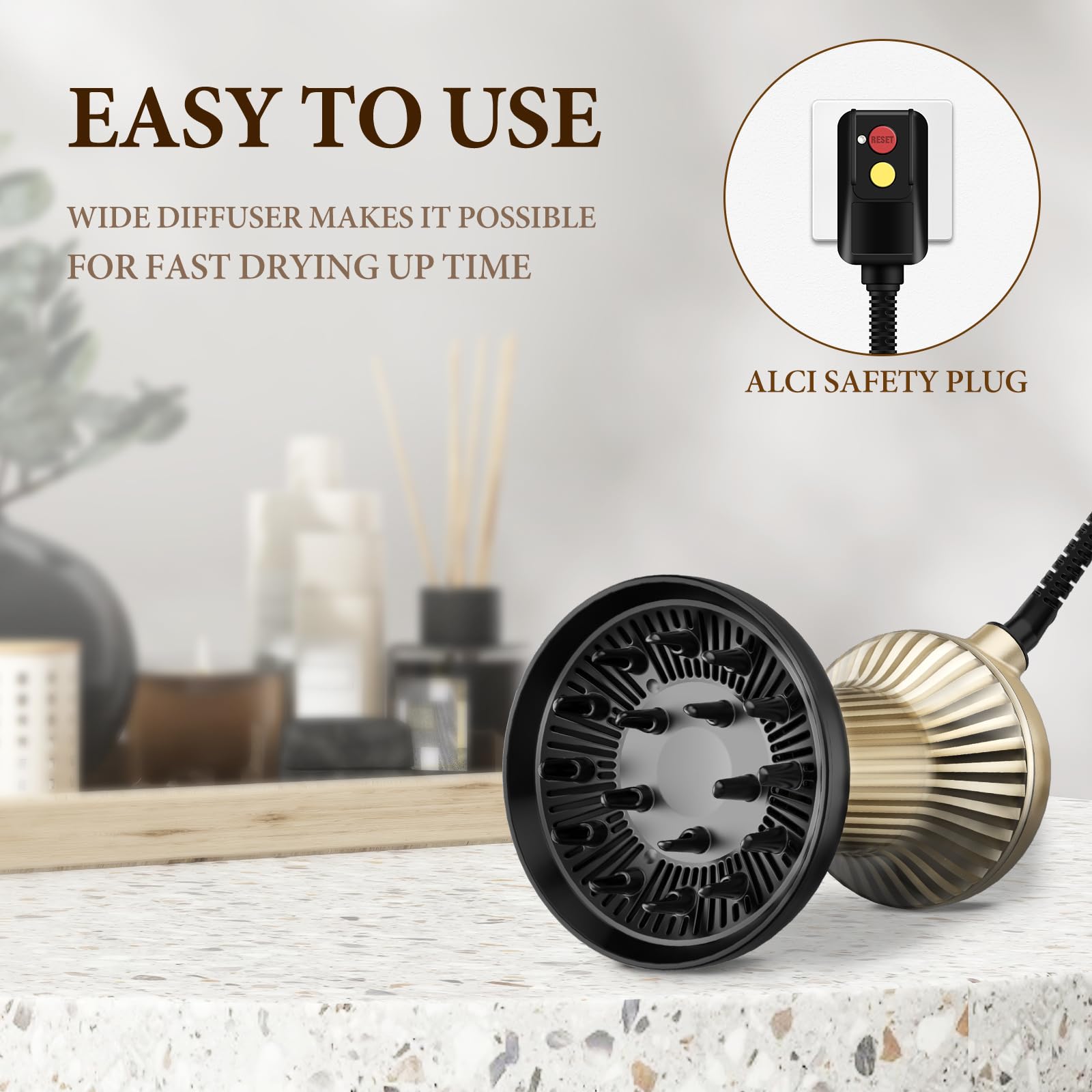 - 2 in 1 Hair Dryer Diffuser: Say goodbye to the combination of hair dryer and attached diffuser, this hair dryer with locked diffuser, no longer have to worry about an attachment falling off