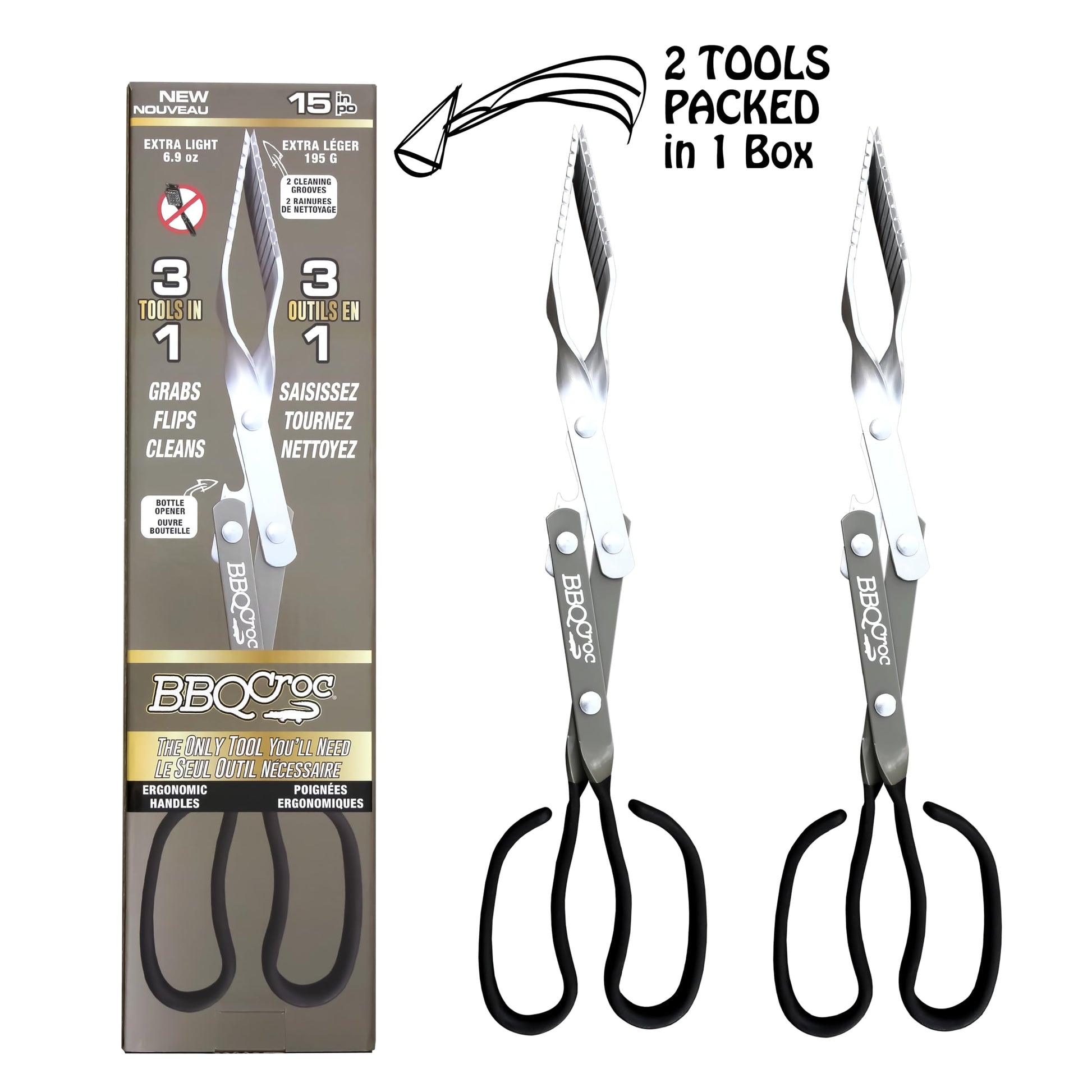- MASTER THE GRILL: Unleash your grilling prowess with the BBQ Croc 15 inch 3-in-1 Barbecue Tool. This versatile tool is designed to grab, flip, and clean like a pro, ensuring precise control and efficient performance. Perfect for backyard cookouts, camping adventures, and beach parties. Over 15 inches (38 cm) long to keep hands safe from the heat. Weighing just 6.9 oz (195 g), it allows precise and easy food movement.