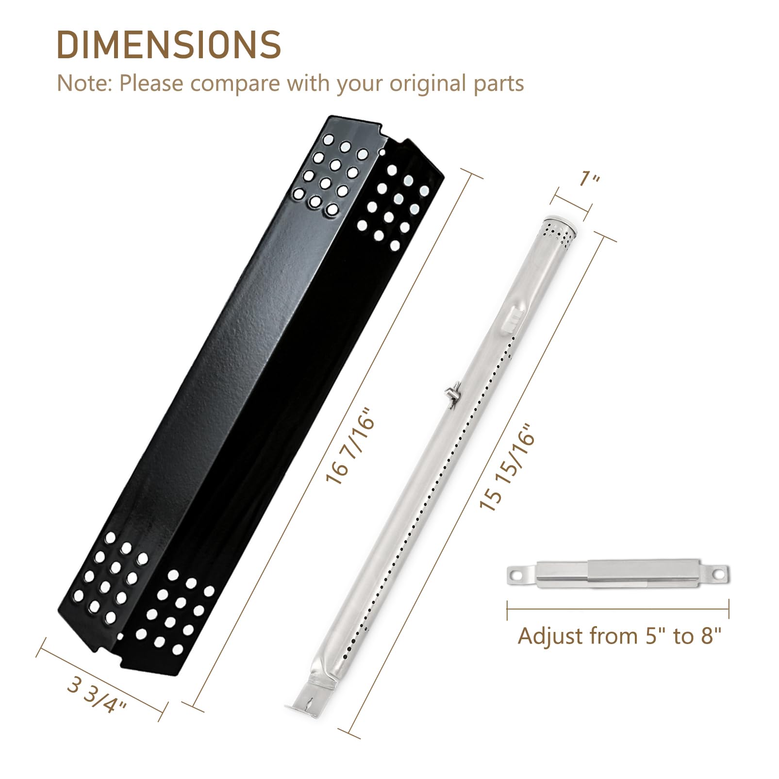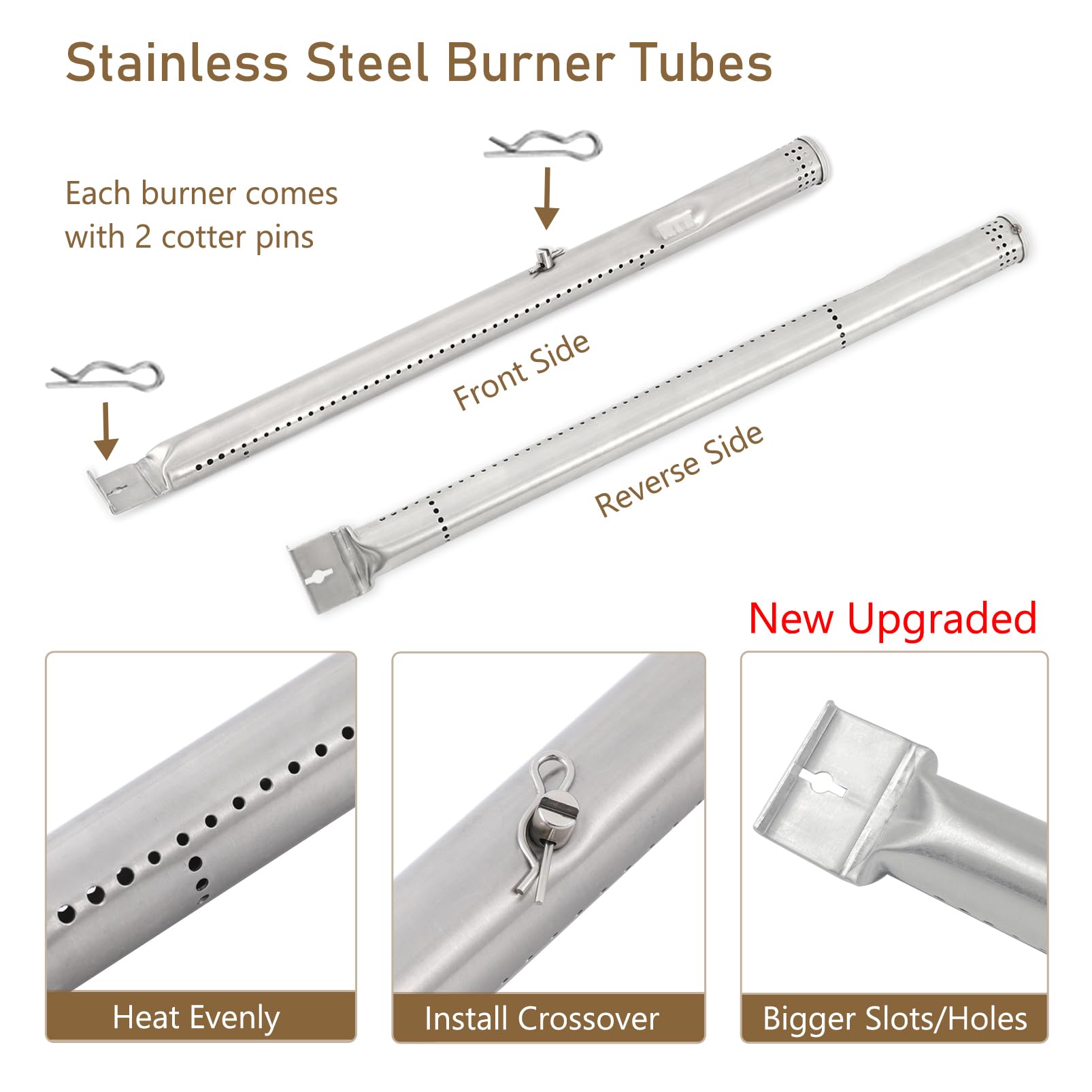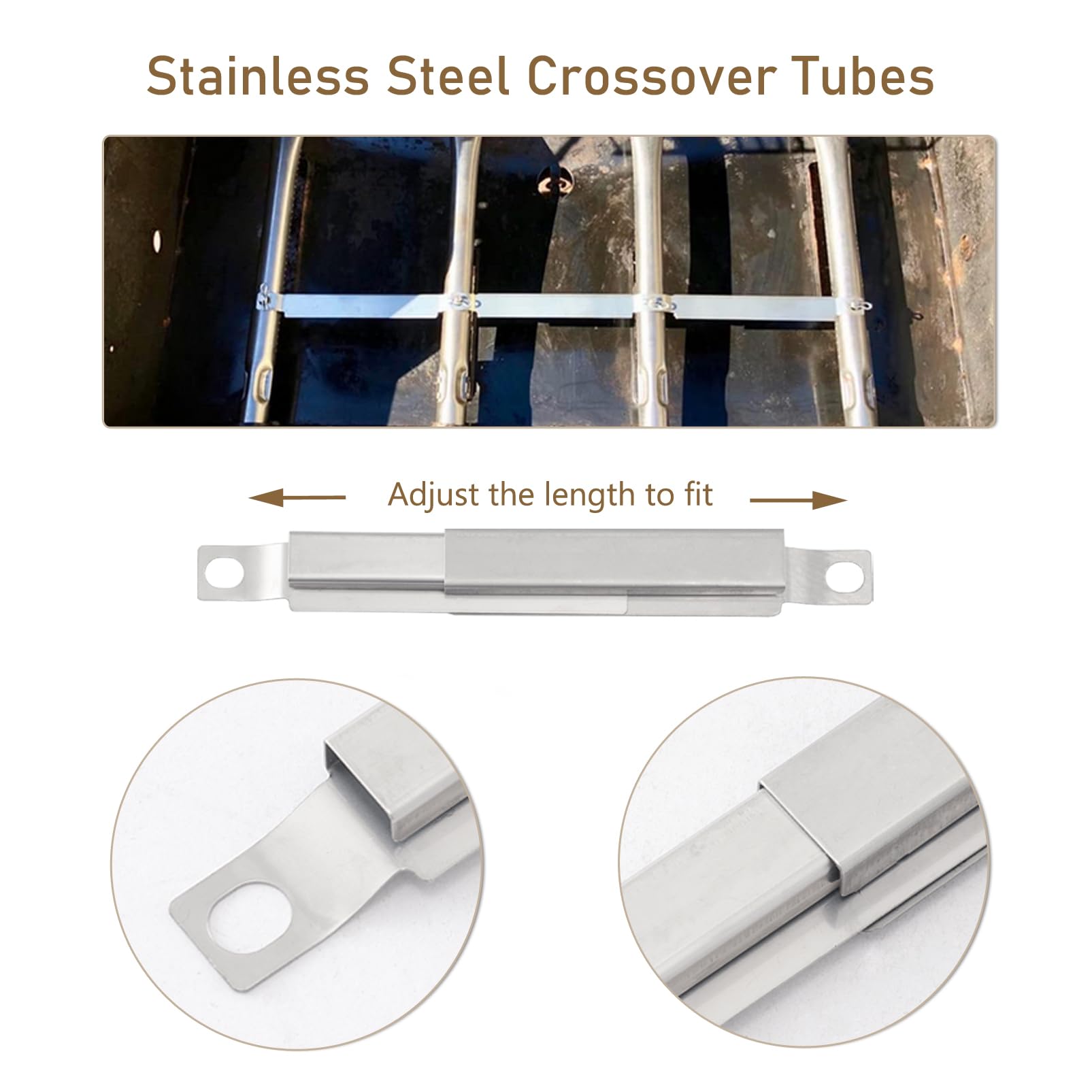 - Package Includes: 4 x Porcelain Steel Heat Shields, 4 x Stainless Steel Burner Tubes, 3 x Stainless Steel Adjustable Carryover Tubes