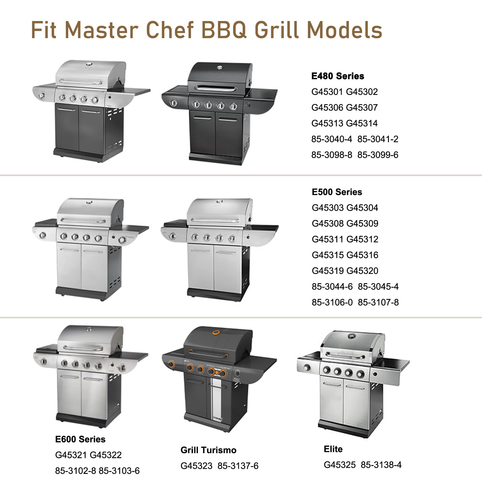 - Fits Master Chef BBQ Grills: Master Chef 85-3044-6, 85-3045-4, E480, E500, G45301, G45302, G45303, G45304, G45306LP, G45307N, G45308, G45309, G45311, G45312, G45313, G45314, G45315, G45316, G45319, G45321, G45322, G45323, G45325, G45327 models
