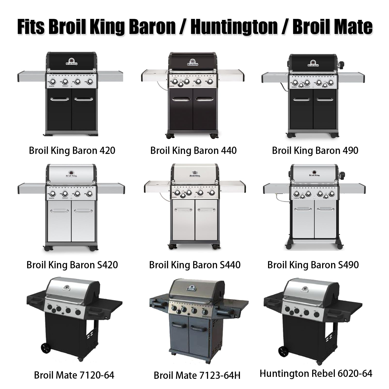 - Fits Broil King Baron 300/400 Series (2013 & newer) crown 300/400 Series (2012 & newer), Broil King Huntington Rebel 3/4 burner gas grills (2009-2013), Huntington Patriot 3/4 burner gas grills (2015 & newer)