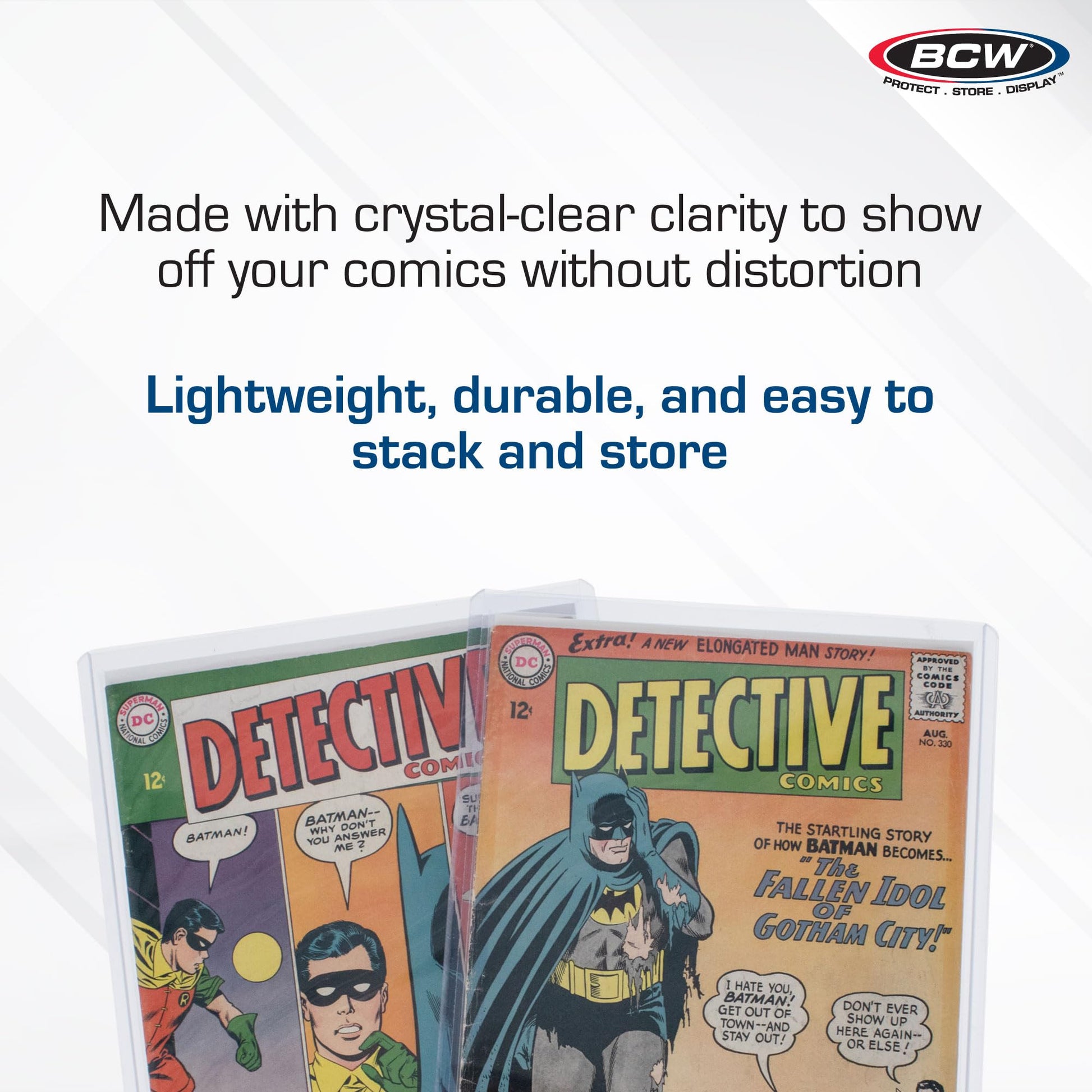 - Safe and Sturdy: These comic top loaders are designed to withstand the test of time, keeping your comic books safe from dust, dirt, and handling wear. BCW's PVC formulation contains no plasticizers or stearates, guaranteeing maximum protection.