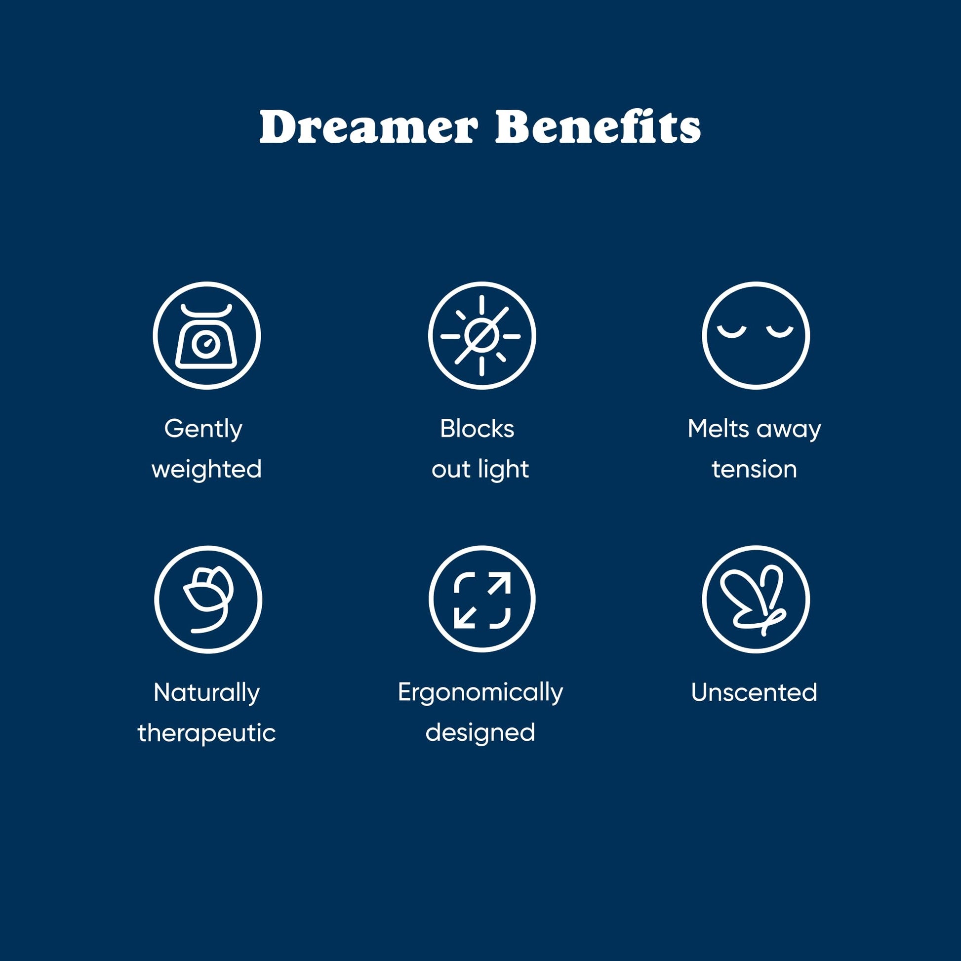 - 100% LIGHT BLOCKING: The Dreamer’s soft padding provides full coverage for your eyes, temples, and ears, making it a completely light blocking sleeping mask that helps reduce sensory overload for on-the-go naps. You can use the Dreamer on the go as an eye mask for travel, or at home as a weighted face mask for sleeping or relieving visual fatigue.