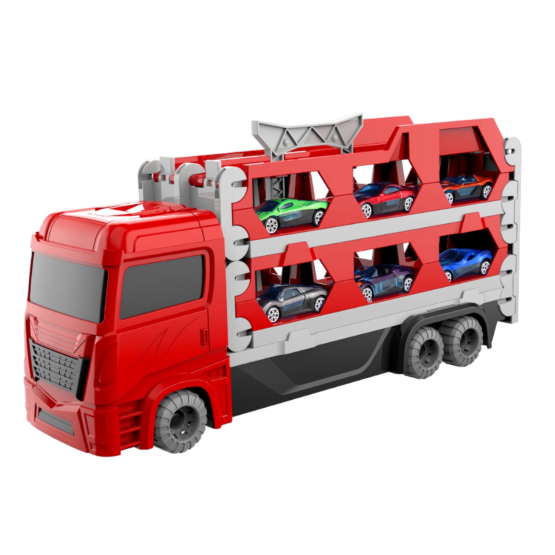 - 【Multifunctional Transport Truck Toys】This trucks for 3 4 5 6 year old boys makes for great push car play on its own, while also serving as storage space for small vehicles. And the 3-in-1 truck toy for boys also transforms into a 65-inch race track with a dual launcher for competitive racing.