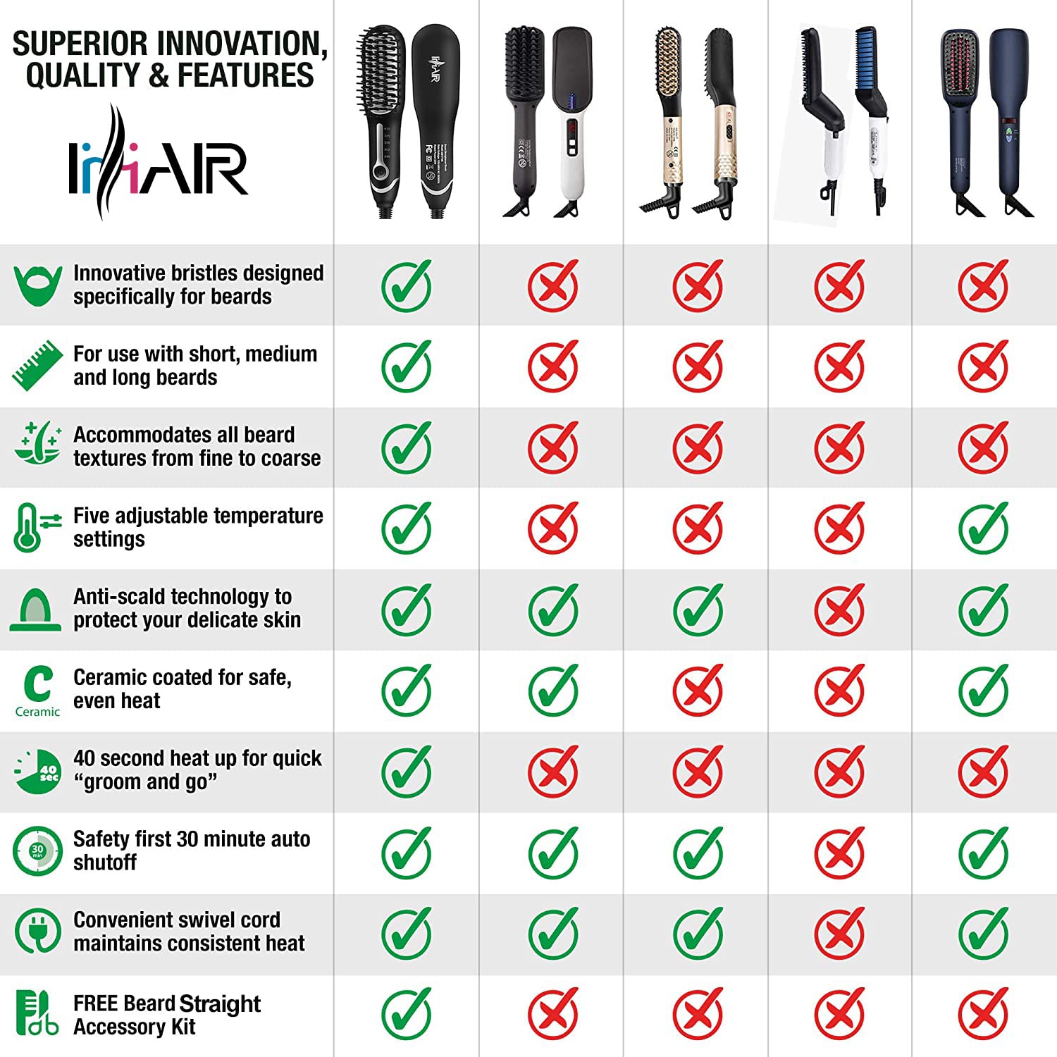 - 【5 Heat Settings & Stable Heating】We apply unique PTC heating technology on this heat beard brush hair straightener, heats up stably and safely. 5 temperatures are available on our portable beard straightening brush, 248°F for thin/soft beard/hair, 302°F for normal beard/hair, 338°F for wavy beard/hair and 375°F/410°F for curly coarse beard/hair.