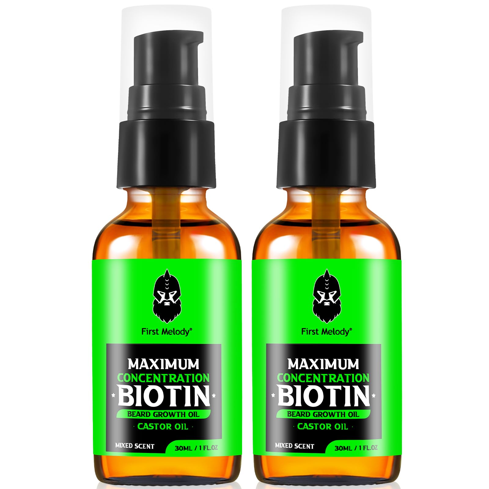 Beard Oil,Maximun Thickening Biotin, with Castor Oil and Argan & Jojoba Oils, Promotes Beard Growth, Styles, Strengthens & Softens Beards & Mustaches,1 Ounce*2(2 Pack)