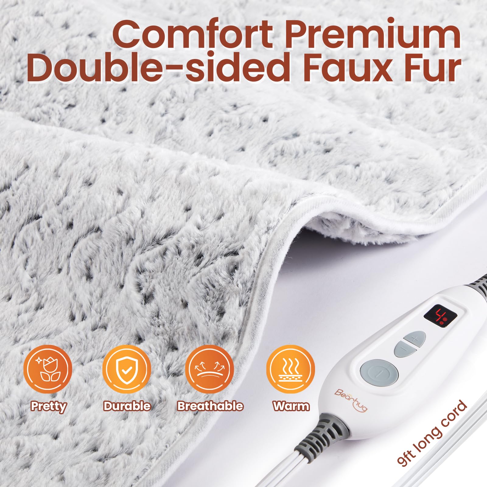 Bearhug XXL Electric Heated Pad 17''x33'' Double-Sided Faux Fur Heating Pad, 6 Heat Levels, 2-Hour Auto-Off, Moist & Dry Heat Therapy for Back Pain Relief, Machine Washable, ETL Certified - Gift Box