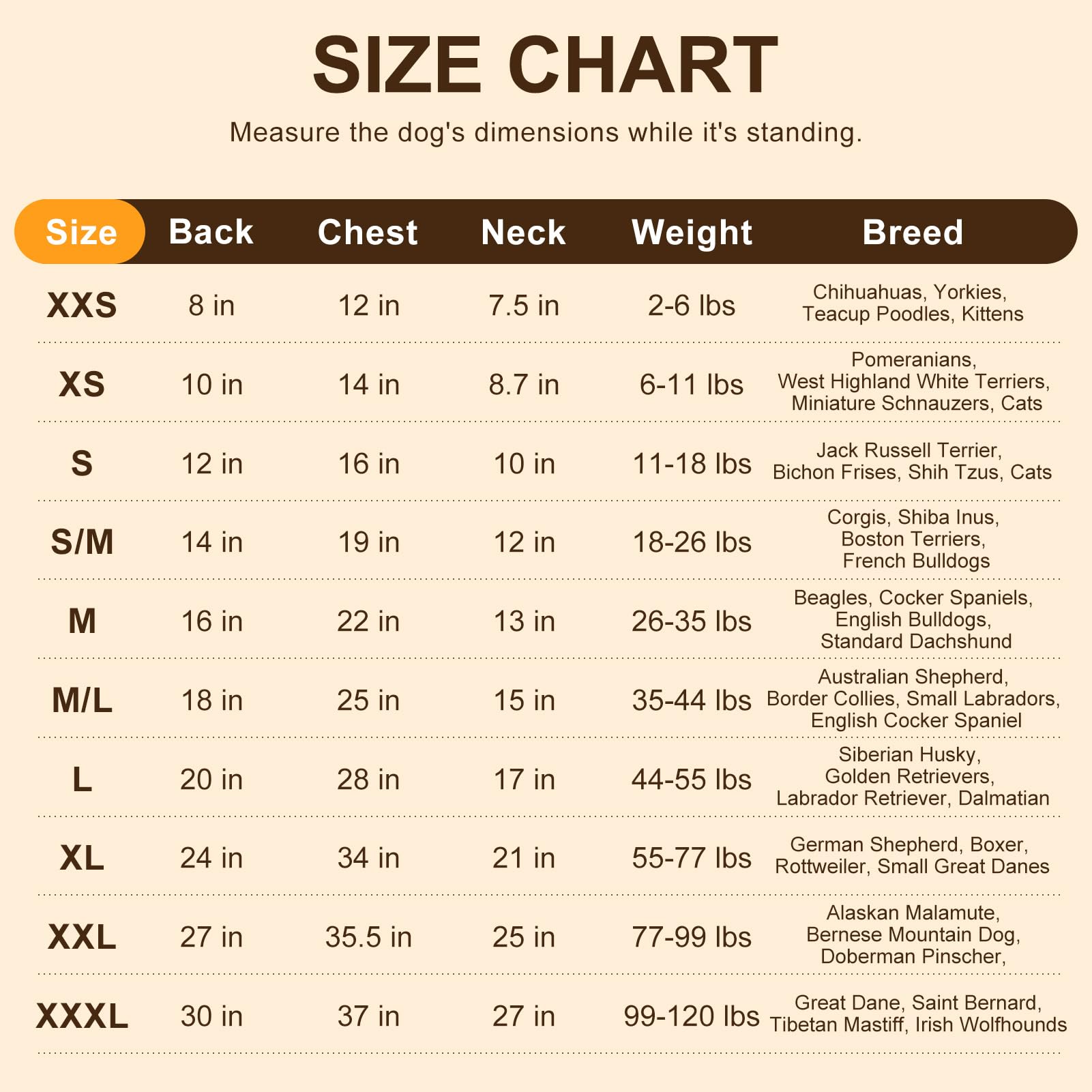 - DOG CLOTHES SIZE : These hooded sweatshirts fit perfectly on small, medium, and large dogs, 8 sizes for you to choose from. Be sure to check carefully our size information. With the stylish sports dog hoodie, your lovely dog will be adorable at Halloween, Christmas, Thanksgiving, and Easter parties!