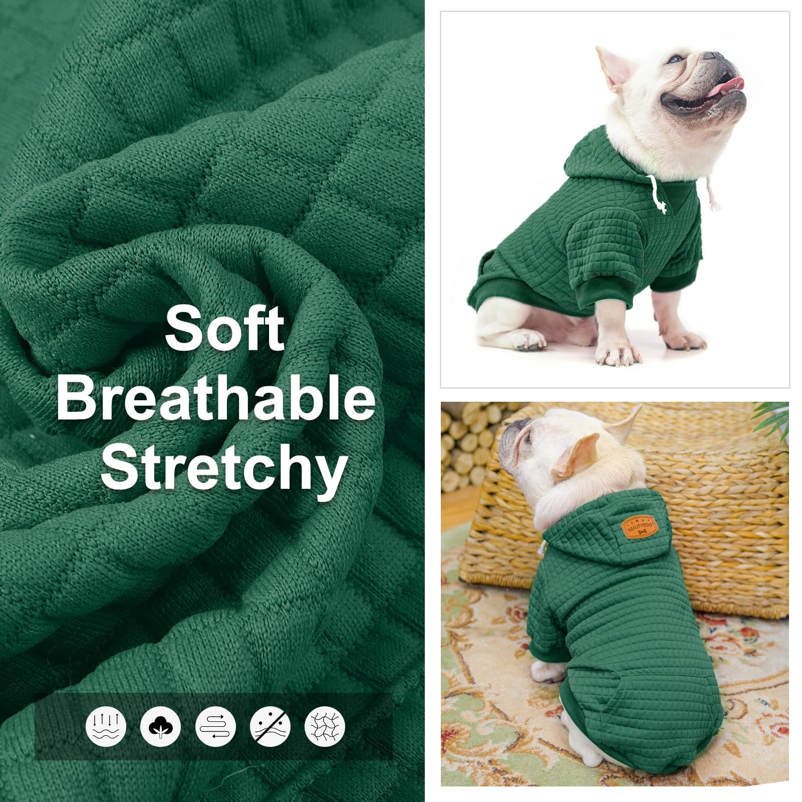 BEAUTYZOO Small Dog Hoodie Sweater with Pockets, Dog Clothes for Small Medium Dogs Boy Girl, Waffle-Like Laminated Cotton Pet Coats with Hat and Leash Hole, Green XL