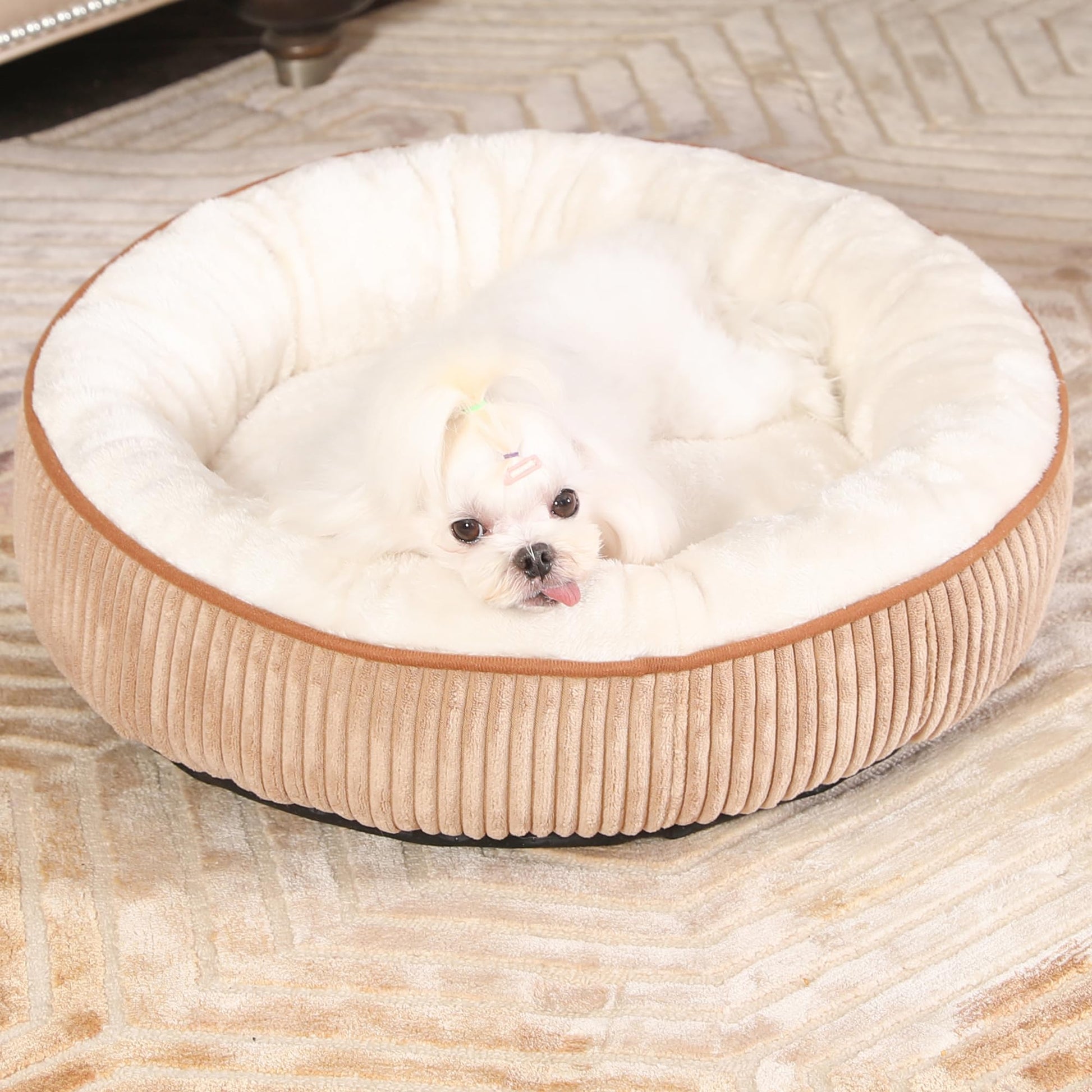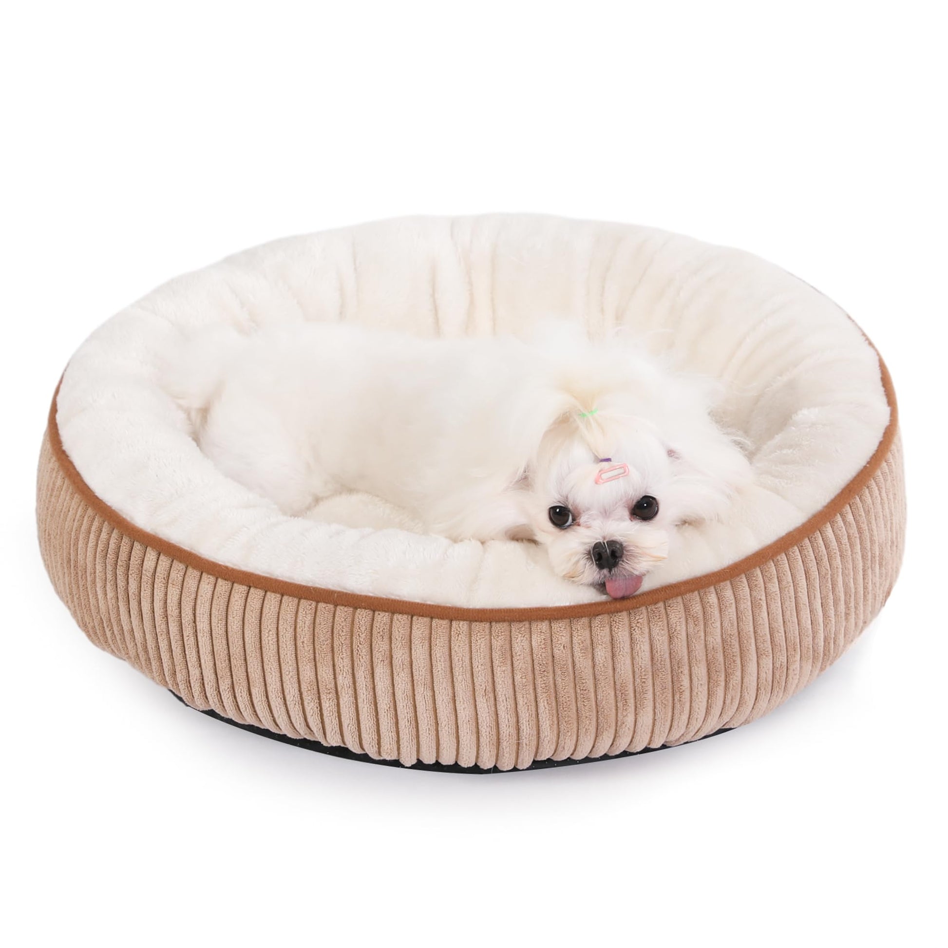 Bedfolks Donut Cat and Dog Bed,20 Inches Calming Round Dog Beds for Small Dogs,Washable Anti Anxiety Cuddler Puppy Bed with Non-Slip Bottom(Brown,XS)