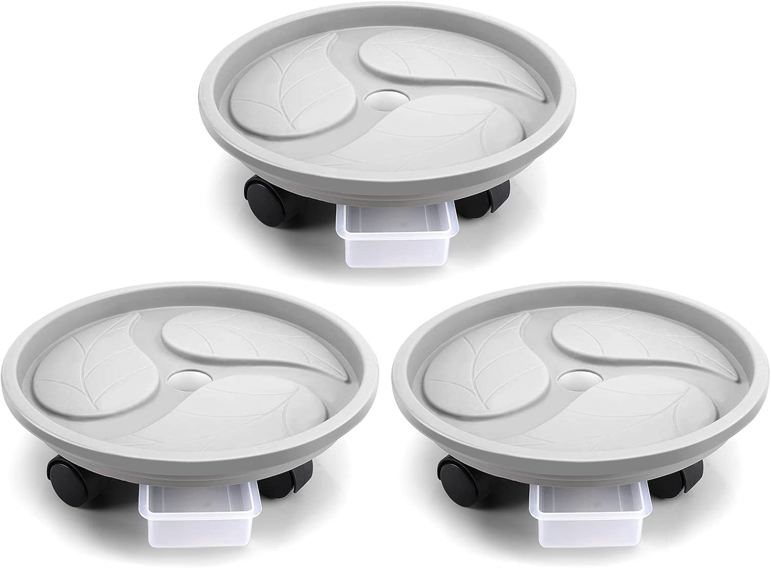 - DRAINAGE HOLE AND TRAY DESIGN:Each of the plastic plant caddies has drainage holes on saucer and drainage tray under the saucer. It's easy to draw the drainage tray out and wash it separately.The saucer tray can catch water and prevent the floor from getting wet when watering.Allows air to flow underneath the pot.keep the floor clean and no water leaking mess.
