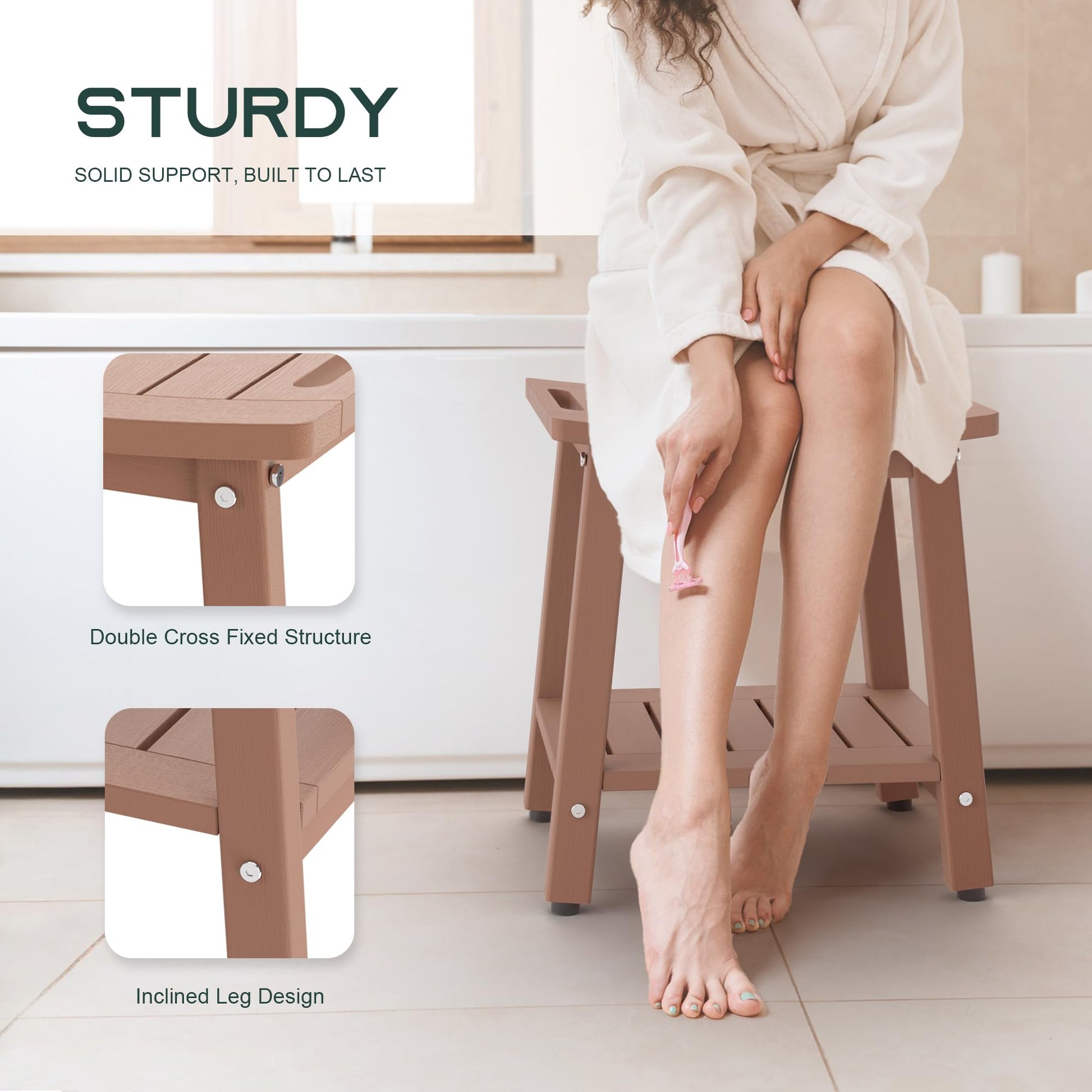 - WATERPROOF & NON-FADE: Our poly lumber material ensures that the shower stool can be safely washed with water and will never fade or grow moldy. 304 Stainless Steel Screws are used to avoid rust in humid environment.